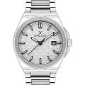 Мужские кварцевые часы Daniel Klein — это модный аксессуар на каждый день. Корпус диаметром 42 мм выполнен из нержавеющей стали. БезельБезельВнешний ободок, закрепляющий стекло. В спортивных часах так называется поворотное кольцо с делениями на циферблате, выполняет роль таймера – замеряет отрезки времени на шкале. Неподвижный безель – элемент декора. Однонаправленно вращающийся безель на дайверских часах позволяет фиксировать моменты погружения и выныривания на поверхность. украшен декоративными винтами. Циферблат серебристого цвета имеет текстурное покрытие, оформлен штрихами и стрелками. Окошко даты расположено в положении 3 часов. Стрелки и метки с люминесцентным покрытиемЛюминесцентное покрытиеПозволяет считывать показания времени в темноте. Производители наносят на стрелки, часовые индексы, безель или поверхность циферблата светонакопительный состав, дающий холодное свечение., обеспечивающим хорошую читаемость в темноте. Циферблат защищён минеральным стекломМинеральное стеклоМинеральное стекло представляет собой искусственно выращенный минерал кварца. Такое стекло отличается особой устойчивостью к повреждениям и царапинам. Уступает по некоторым качествам сапфировому стеклу.. Часы оснащены стальным браслетом на раскладной застёжкеРаскладная застёжкаТакой тип застёжки используется только на браслетах из металла. Она никогда не раскрывается полностью, происходит разделение на 2 и более частей. Раскладывающая застёжка снизит вероятность потери часов к минимуму.. Водонепроницаемость 50 м позволяет использовать часы в повседневных условиях. Идеальный выбор для тех, кто ценит турецкое качество и современный дизайн.