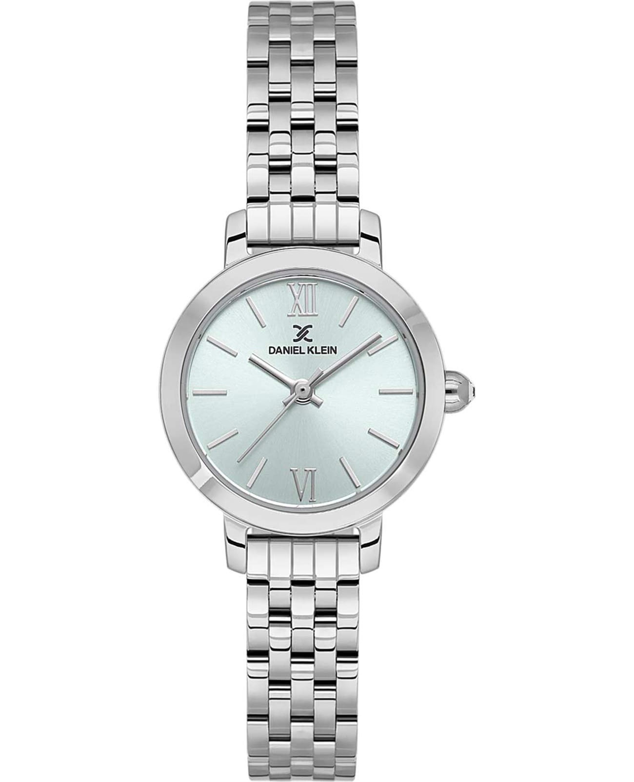 Женские кварцевые часы Daniel Klein — это изысканный аксессуар для настоящей леди. Корпус диаметром 26 мм выполнен из нержавеющей стали. Циферблат перламутрового зелёного цвета оформлен штрихами, римскими цифрами VI и XII и стрелками. Циферблат защищён минеральным стекломМинеральное стеклоМинеральное стекло представляет собой искусственно выращенный минерал кварца. Такое стекло отличается особой устойчивостью к повреждениям и царапинам. Уступает по некоторым качествам сапфировому стеклу.. Часы оснащены стальным браслетом на раскладной застёжкеРаскладная застёжкаТакой тип застёжки используется только на браслетах из металла. Она никогда не раскрывается полностью, происходит разделение на 2 и более частей. Раскладывающая застёжка снизит вероятность потери часов к минимуму.. Водонепроницаемость 30 м позволяет использовать часы в повседневных условиях. Идеальный выбор для тех, кто ценит турецкое качество и элегантный дизайн.
