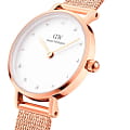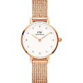Женские наручные часы с минеральным стекломМинеральное стеклоМинеральное стекло представляет собой искусственно выращенный минерал кварца. Такое стекло отличается особой устойчивостью к повреждениям и царапинам. Уступает по некоторым качествам сапфировому стеклу. Daniel Wellington Petite DW00100529, кварцевый механизм с высокой точностью. Корпус часов изготовлен из стали с PVD-покрытиемPVDУльтратонкое покрытие наносится в технике вакуумного напыления, сочетает в себе нитрид титана особой прочности со слоем золота или оксида хрома. Несёт в себе декоративную или защитную функцию.. Циферблат украшен 12 кристаллами Swarovski. Класс водозащиты: 30 метров, позволит защитить корпус от случайных брызг или капель дождя. Стальной браслет миланского плетения с PVD-покрытиемPVDУльтратонкое покрытие наносится в технике вакуумного напыления, сочетает в себе нитрид титана особой прочности со слоем золота или оксида хрома. Несёт в себе декоративную или защитную функцию. на раскладном замкеРаскладной замокДанный вариант застежки используется только на часах с металлическим браслетом. Отличительная особенность такого крепления в том, что длина браслета становится универсальной и вы можете самостоятельно отрегулировать нужный вам размер – застежка просто двигается по браслету часов..