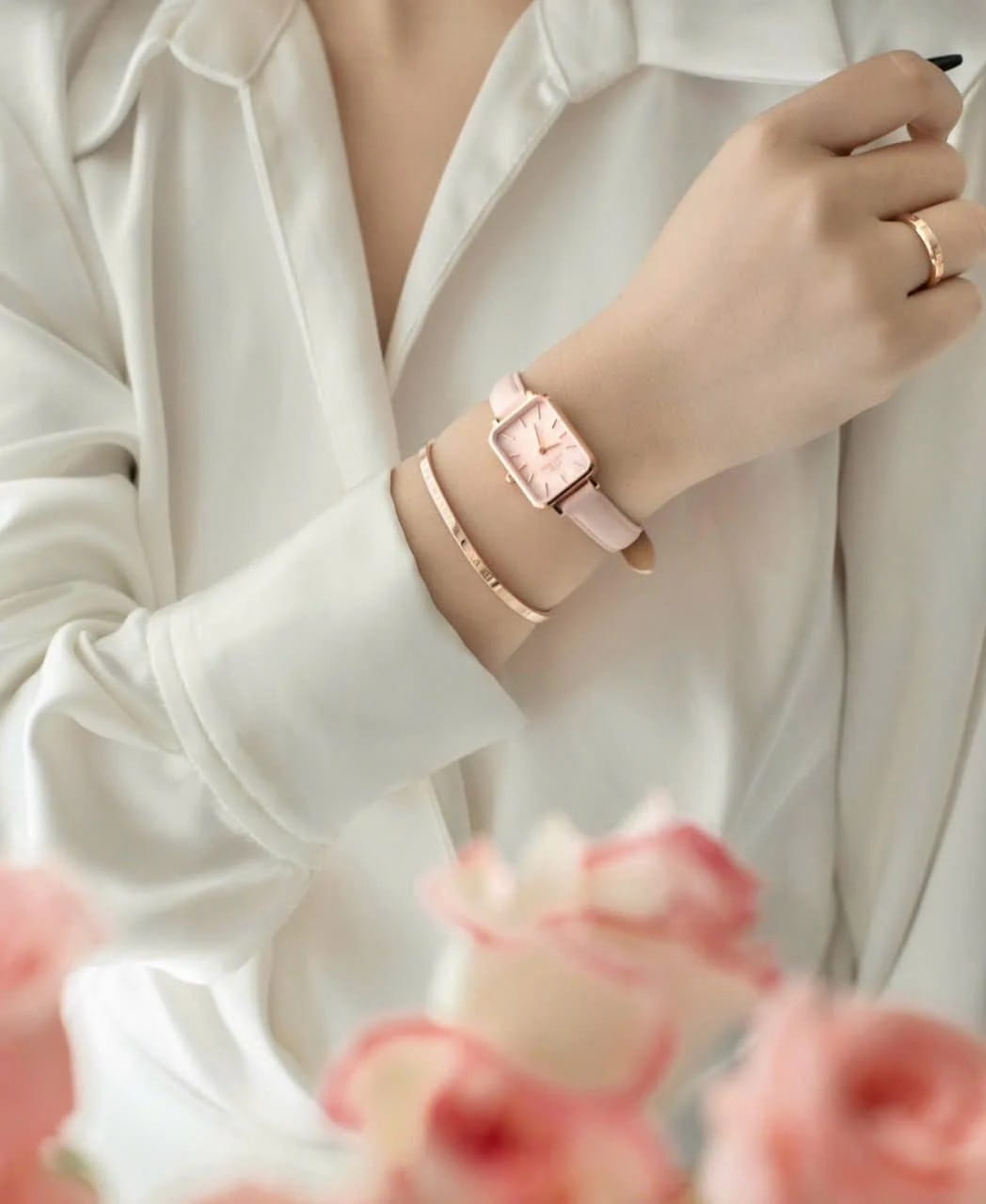 Женские наручные часы с минеральным стекломМинеральное стеклоМинеральное стекло представляет собой искусственно выращенный минерал кварца. Такое стекло отличается особой устойчивостью к повреждениям и царапинам. Уступает по некоторым качествам сапфировому стеклу. Daniel Wellington Quadro Cherry Blossom DW00100636, кварцевый механизм с высокой точностью. Класс водозащиты: 30 метров, позволит защитить корпус от случайных брызг или капель дождя. Корпус часов изготовлен из стали с PVD-покрытиемPVDУльтратонкое покрытие наносится в технике вакуумного напыления, сочетает в себе нитрид титана особой прочности со слоем золота или оксида хрома. Несёт в себе декоративную или защитную функцию.. Кожаный ремешок на стандартной застёжке. Перламутровый циферблат украшен фирменным логотипом Daniel Wellington. Накладные метки в виде штрихов. Рифленая заводная головка. Индивидуальный серийный номер.