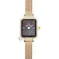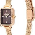 Женские наручные часы с минеральным стекломМинеральное стеклоМинеральное стекло представляет собой искусственно выращенный минерал кварца. Такое стекло отличается особой устойчивостью к повреждениям и царапинам. Уступает по некоторым качествам сапфировому стеклу. Daniel Wellington Quadro Mini Crystal Zodiac Evergold DW00100752, кварцевый механизм с высокой точностью. Миниатюрный корпус часов изготовлен из нержавеющей стали с PVD-покрытиемPVDУльтратонкое покрытие наносится в технике вакуумного напыления, сочетает в себе нитрид титана особой прочности со слоем золота или оксида хрома. Несёт в себе декоративную или защитную функцию.. БезельБезельВнешний ободок, закрепляющий стекло. В спортивных часах так называется поворотное кольцо с делениями на циферблате, выполняет роль таймера – замеряет отрезки времени на шкале. Неподвижный безель – элемент декора. Однонаправленно вращающийся безель на дайверских часах позволяет фиксировать моменты погружения и выныривания на поверхность. украшен кристаллами Swarovski. Матовый циферблат украшен фирменным логотипом Daniel Wellington. Накладные метки в виде штрихов. Японский кварцевый механизм. Рифленая заводная головка. Класс водозащиты: 30 метров, позволит защитить корпус от случайных брызг или капель дождя. Стальной браслет миланского плетения с PVD-покрытиемPVDУльтратонкое покрытие наносится в технике вакуумного напыления, сочетает в себе нитрид титана особой прочности со слоем золота или оксида хрома. Несёт в себе декоративную или защитную функцию. на раскладном замкеРаскладной замокДанный вариант застежки используется только на часах с металлическим браслетом. Отличительная особенность такого крепления в том, что длина браслета становится универсальной и вы можете самостоятельно отрегулировать нужный вам размер – застежка просто двигается по браслету часов.. Корпус дополнен колечком для подвески.