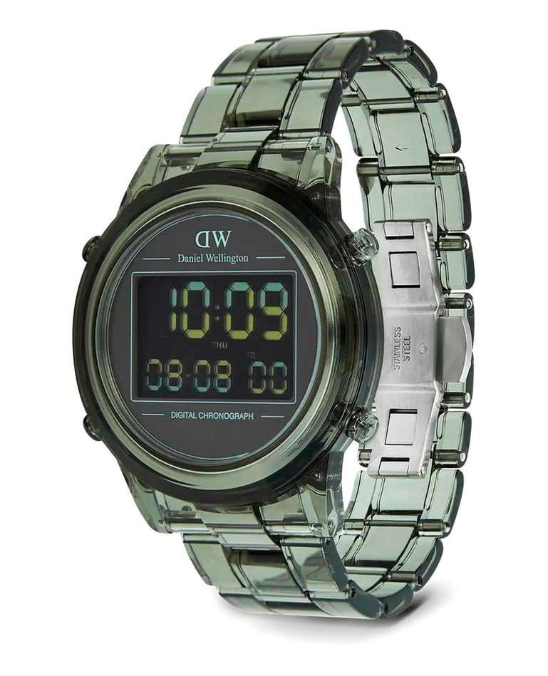 Мужские наручные часы Daniel Wellington DW00100768 из коллекции Retro Digital сочетают в себе современный дизайн и экологичность . Модель обладает круглым корпусом диаметром 42 мм, выполненным из прозрачного биопластика и нержавеющей стали (316L), что делает их легкими и устойчивыми к внешним воздействиям . Циферблат защищен прочным органическим стеклом, устойчивым к царапинам и механическим повреждениям. Часы оснащены цифровым механизмом, поддерживающим функцию отображения автоматического календаря, показывающего дату . Дополнительно встроены функции будильникаБудильникБуди́льник — часы, в заданный момент времени подающие звуковой, световой и/или в редких случаях другой сигнал. и секундомераСекундомерСекундоме́р — прибор, способный измерять интервалы времени с точностью до долей секунды., что делает модель практичной для активного образа жизни . Для удобства считывания информации в темное время суток циферблат оснащен светодиодной подсветкойСветодиодная подсветкаСветодиодная или LED-подсветка обеспечивает появление яркого холодного свечения за счёт LED-элементов - маленьких лампочек. Они потребляют минимальное количество энергии, чаще всего можно встретить 1 светодиод, в нижней части циферблата.. Ремешок выполнен из прозрачного биопластика зеленого цвета на застёжке «бабочка» с кнопкамиЗастёжка "бабочка"Такой вид застёжки дополняется предохранителями, помогающими избежать случайного раскрытия браслета. Обладают изящным исполнением. , что добавляет модели элегантности и универсальности . Корпус часов водонепроницаем до 30 метров, что позволяет использовать их в условиях ограниченного контакта с водой, например, при мытье рук или попадании брызг . Модель разработана брендом Daniel Wellington, известным своим минималистичным стилем и вниманием к деталям, что делает эти часы идеальным выбором для ценителей современного дизайна с экологичными материалами .