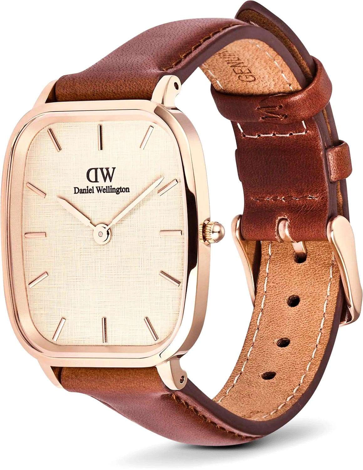 Daniel Wellington Marlon St Mawes Linen Rose Gold — стильные унисекс-часы с утончённым дизайном, в которых сочетаются строгие линии и изысканная лёгкость. Прямоугольный корпус размером 32×36 мм выполнен из нержавеющей стали с PVD-покрытиемPVDУльтратонкое покрытие наносится в технике вакуумного напыления, сочетает в себе нитрид титана особой прочности со слоем золота или оксида хрома. Несёт в себе декоративную или защитную функцию., создающим мягкий и благородный блеск.Минеральное стеклоМинеральное стеклоМинеральное стекло представляет собой искусственно выращенный минерал кварца. Такое стекло отличается особой устойчивостью к повреждениям и царапинам. Уступает по некоторым качествам сапфировому стеклу. устойчивое к мелким механическим повреждениям. Циферблат Linen оформлен в светлом тоне с изящной текстурой «лён», подчёркивающей скандинавский минимализм и добавляющей образу утончённости. Строгие метки и тонкие стрелки поддерживают гармонию линий. Модель оснащена надёжным кварцевым механизмом, гарантирующим точность хода. Кожаный ремешок на стандартной застежке Daniel Wellington — универсальный аксессуар для ценителей лаконичного стиля, идеально подходящий как к повседневным, так и к более торжественным образам.