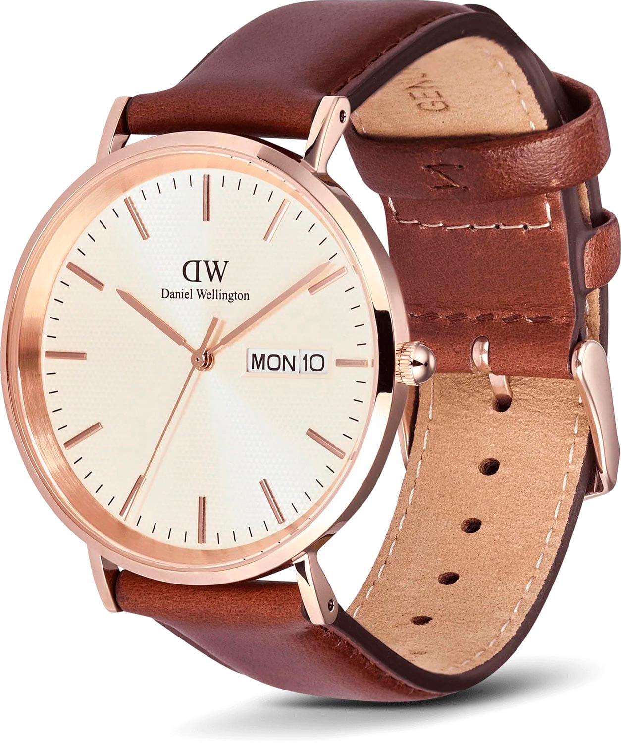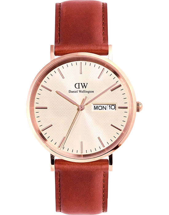 Daniel Wellington — минималистичные мужские часы, сочетающие современную элегантность и скандинавскую строгость. Круглый корпус диаметром 40 мм выполнен из нержавеющей стали с PVD-покрытиемPVDУльтратонкое покрытие наносится в технике вакуумного напыления, сочетает в себе нитрид титана особой прочности со слоем золота или оксида хрома. Несёт в себе декоративную или защитную функцию. с полированной поверхностью, акцентируя чистоту линий.