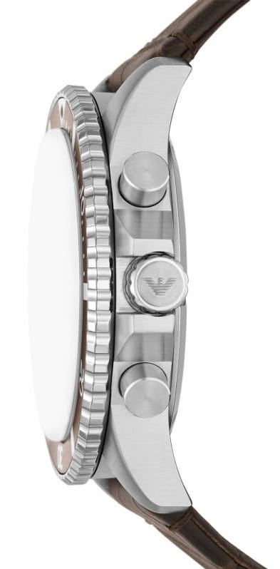 Итальянские мужские часы-хронографХронографФункция позволяет измерять отрезки времени с особой точностью: часы, минуты, секунды. Верным признаком хронографа является наличие на циферблате 3 дополнительных окошек-счётчиков. Emporio Armani Diver AR11486, кварцевый механизм с высокой точностью. Класс водозащиты: 100 метров, позволит плавать, нырять и заниматься другими водными видами спорта. Корпус часов изготовлен из стали. Поворотный безельБезельВнешний ободок, закрепляющий стекло. В спортивных часах так называется поворотное кольцо с делениями на циферблате, выполняет роль таймера – замеряет отрезки времени на шкале. Неподвижный безель – элемент декора. Однонаправленно вращающийся безель на дайверских часах позволяет фиксировать моменты погружения и выныривания на поверхность. с IP-покрытиемIP-покрытиеМетод ионного напыления. Демонстрирует повышенную устойчивость к истиранию, окислению и химическим веществам. Под воздействием высокого давления и температуры около 1500°C молекулы металла надёжно соединяются с частицами корпуса часов..