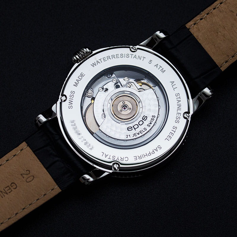 Мужские швейцарские механические часы с автоподзаводом Epos Passion 3390.152.20.25.25. Сапфировое стеклоСапфировое стеклоПрочный и надёжный материал из кристалла сапфира синтетического происхождения, характеризующийся особой твёрдостью и устойчивостью к царапинам и повреждениям. устойчивое к появлению царапин, обладающее высокой прозрачностью. Корпус часов изготовлен из нержавеющей стали. Циферблат украшен