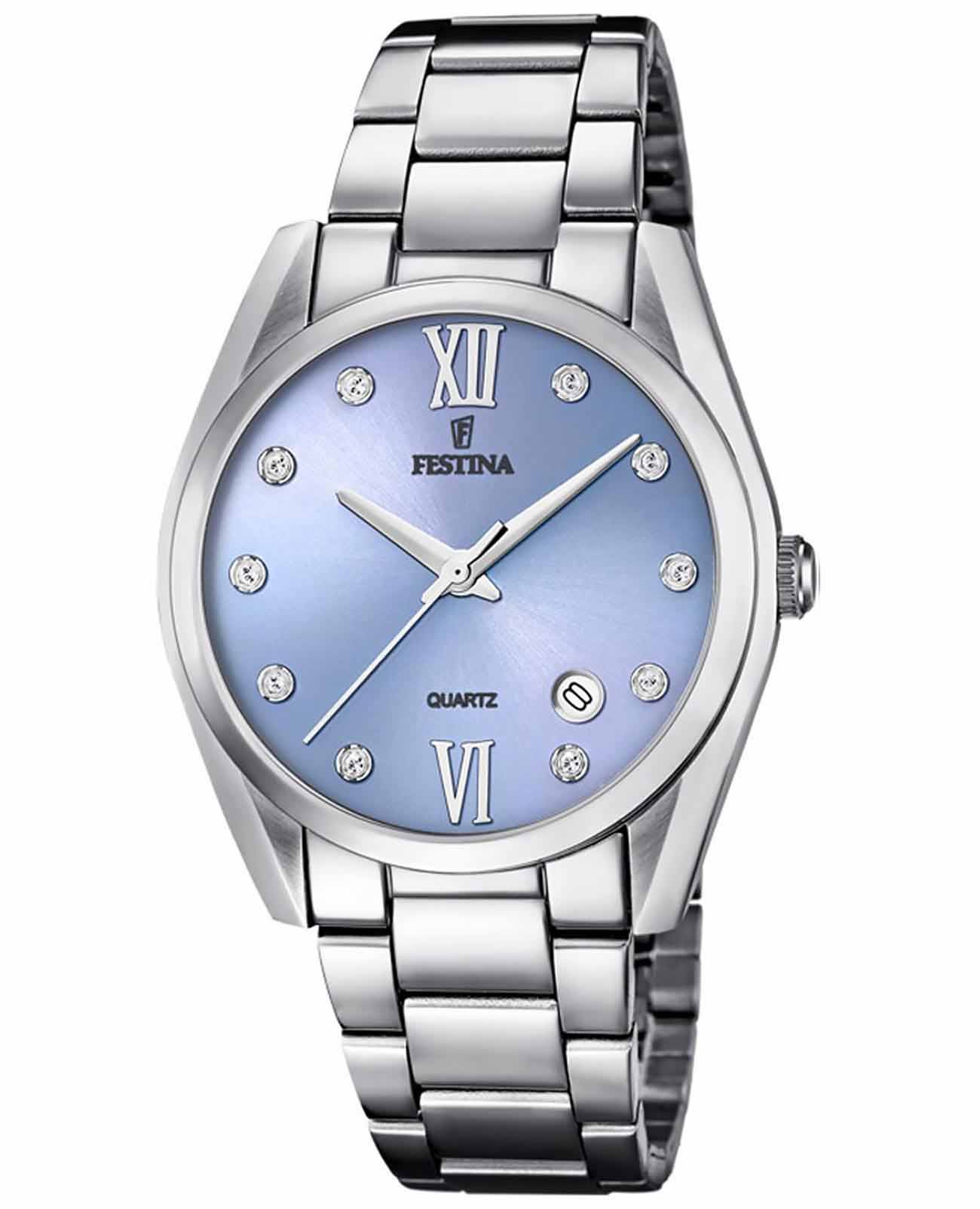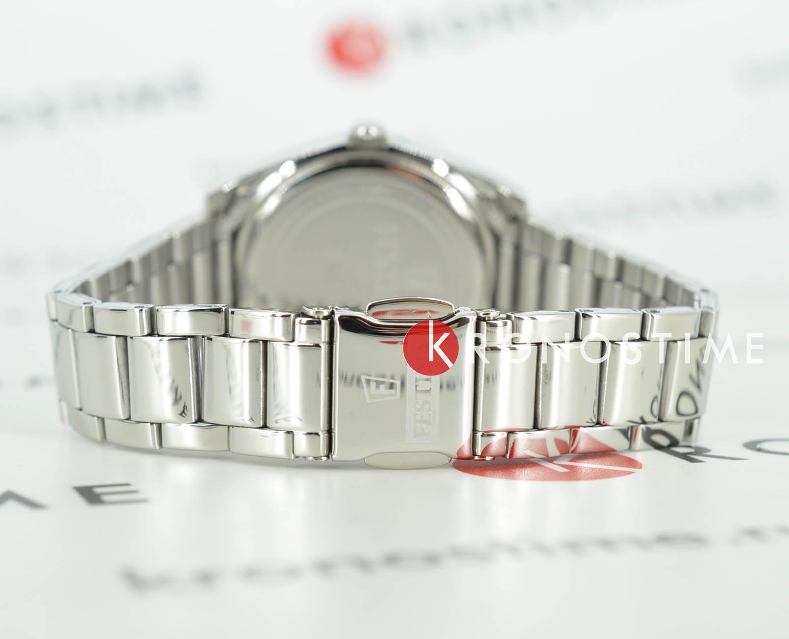 Часы Festina F16790/B — прекрасный выбор для активных и стильных девушек, которые ценят гармонию элегантности и практичности в аксессуарах. Эта модель привлекает внимание своим ярким и современным дизайном, который отлично дополнит как повседневный, так и деловой образ. Надежный кварцевый механизм обеспечивает высокую точность хода и не требует дополнительного обслуживания. Прочное минеральное стеклоМинеральное стеклоМинеральное стекло представляет собой искусственно выращенный минерал кварца. Такое стекло отличается особой устойчивостью к повреждениям и царапинам. Уступает по некоторым качествам сапфировому стеклу. защищает поверхность от появления царапин, сохраняя презентабельный внешний вид часов на долгое время, а также отличается высокой прозрачностью. Особое внимание заслуживает циферблат, выполненный по технологии Sunray — игра света на его поверхности придаёт аксессуару особое очарование, а дополняет необыкновенный вид циферблата — кристаллы. Класс водозащиты 50 метров защитит корпус от случайных брызг и капель дождя. Корпус выполнен из нержавеющей стали, а браслет с раскладной застёжкойРаскладная застёжкаТакой тип застёжки используется только на браслетах из металла. Она никогда не раскрывается полностью, происходит разделение на 2 и более частей. Раскладывающая застёжка снизит вероятность потери часов к минимуму. обеспечивает комфорт и надежность при носке. Также часы дополнены удобным календарем с окошком даты на позиции 4,5 часа.