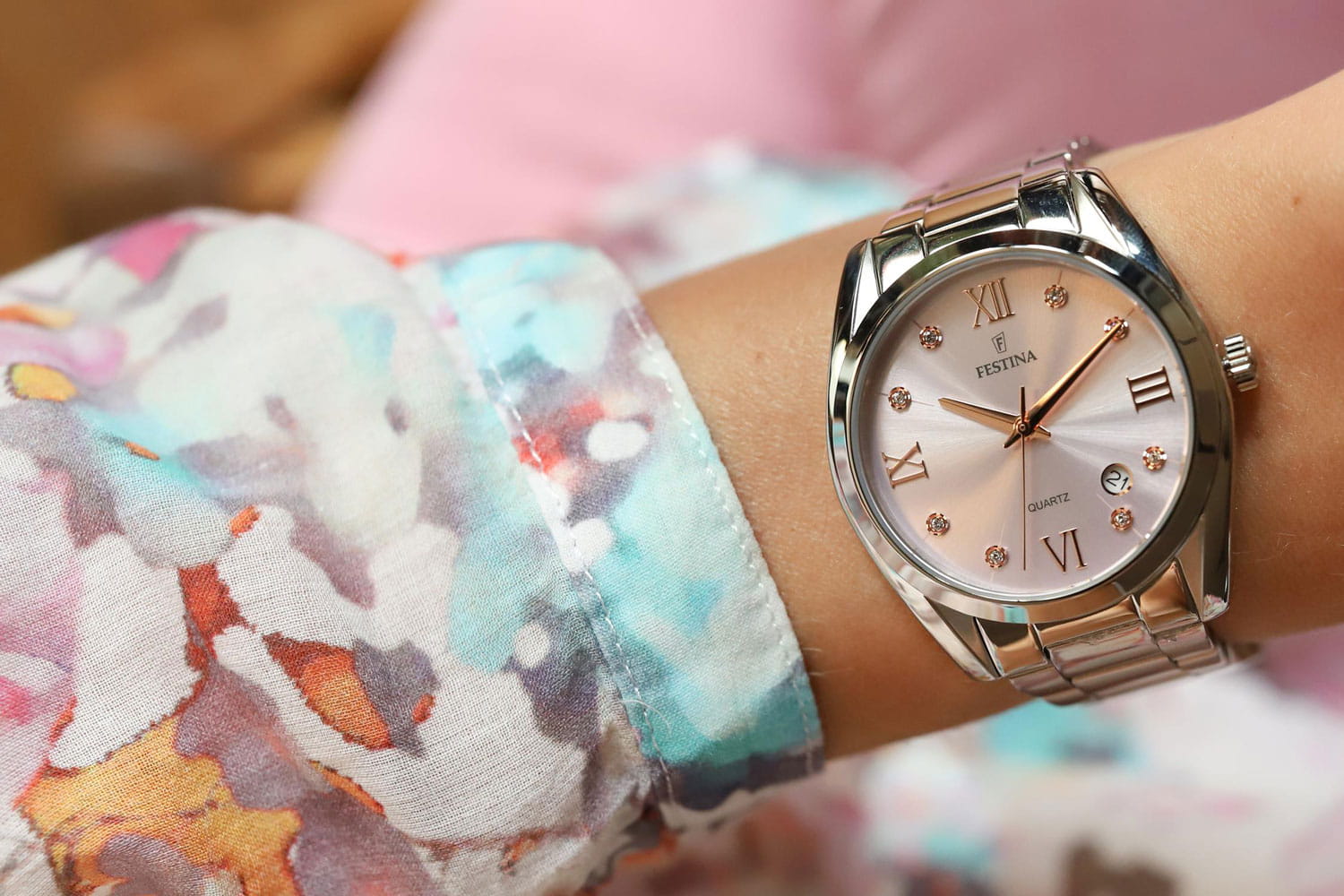 Яркий стиль и функциональность этих часов придутся по душе активной девушке. Кварцевый механизм с высокой точностью. Минеральное стеклоМинеральное стеклоМинеральное стекло представляет собой искусственно выращенный минерал кварца. Такое стекло отличается особой устойчивостью к повреждениям и царапинам. Уступает по некоторым качествам сапфировому стеклу. устойчивое к появлению царапин, обладающее высокой прозрачностью. Циферблат выполнен по технологии Sunray (солнечные лучи). Класс водозащиты: 50 метров, позволит защитить корпус от случайных брызг или капель дождя. Корпус часов изготовлен из нержавеющей стали. Браслет с раскладной застёжкойРаскладная застёжкаТакой тип застёжки используется только на браслетах из металла. Она никогда не раскрывается полностью, происходит разделение на 2 и более частей. Раскладывающая застёжка снизит вероятность потери часов к минимуму..