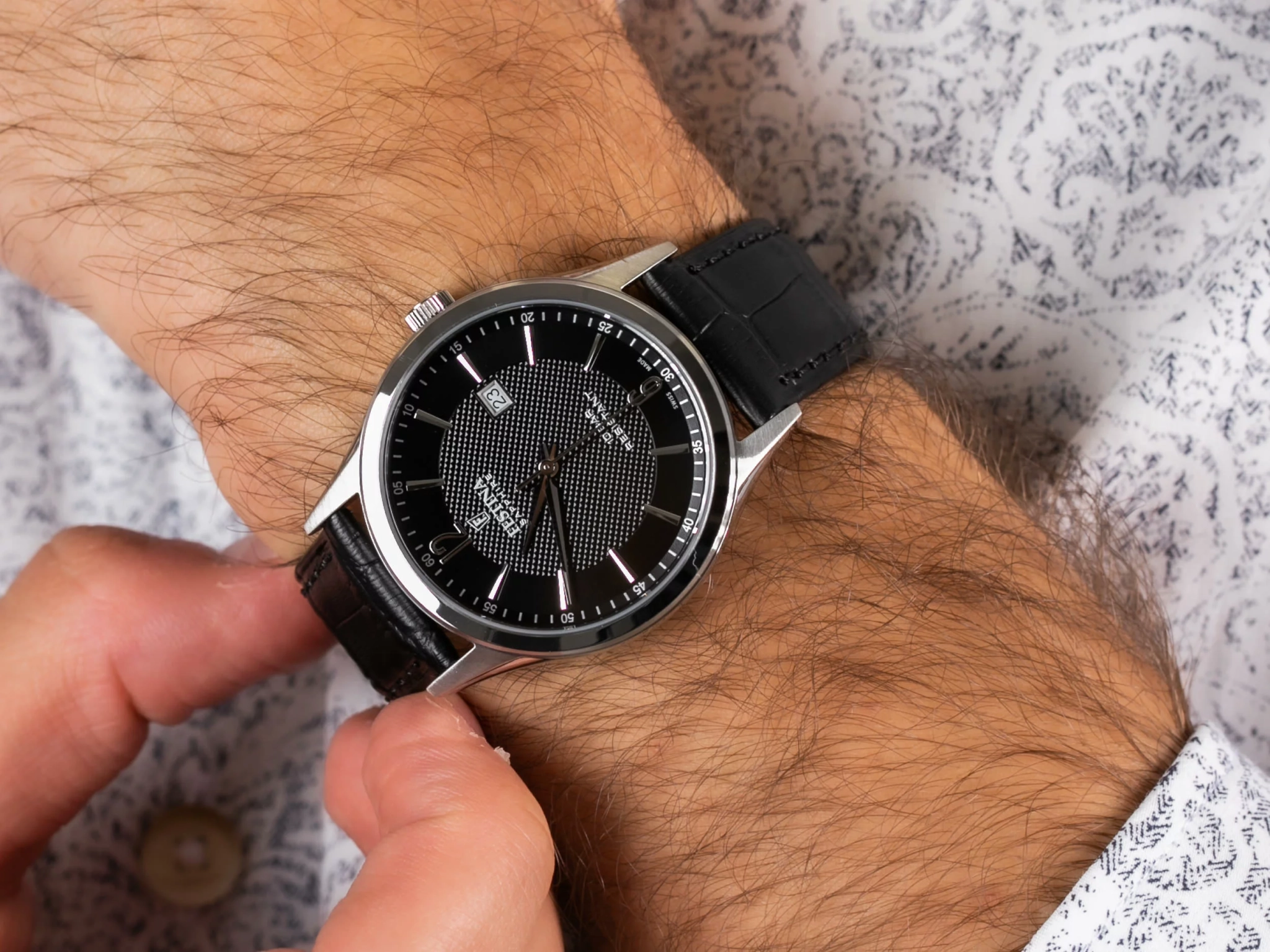 Практичные и стильные часы с круглым корпусом на кожаном ремешке идеальны для современного ритма жизни. Кварцевый механизм с высокой точностью. Сапфировое стеклоСапфировое стеклоПрочный и надёжный материал из кристалла сапфира синтетического происхождения, характеризующийся особой твёрдостью и устойчивостью к царапинам и повреждениям. устойчивое к появлению царапин, обладающее высокой прозрачностью. Класс водозащиты: 100 метров, позволит плавать, нырять и заниматься другими водными видами спорта. Корпус часов изготовлен из нержавеющей стали. Кожаный ремешок с классической застежкой.