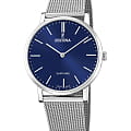 Яркий стиль и функциональность этих часов придутся по душе каждому. Циферблат защищен сапфировым стекломСапфировое стеклоПрочный и надёжный материал из кристалла сапфира синтетического происхождения, характеризующийся особой твёрдостью и устойчивостью к царапинам и повреждениям., устойчивым к появлению царапин и обладающим высокой прозрачностью. Кварцевый механизм с высокой точностью. Класс водозащиты: 50 метров, позволит защитить корпус от капель дождя. Корпус часов изготовлен из нержавеющей стали. Удобный и надежный стальной браслет миланского плетения с регулируемой застежкой.