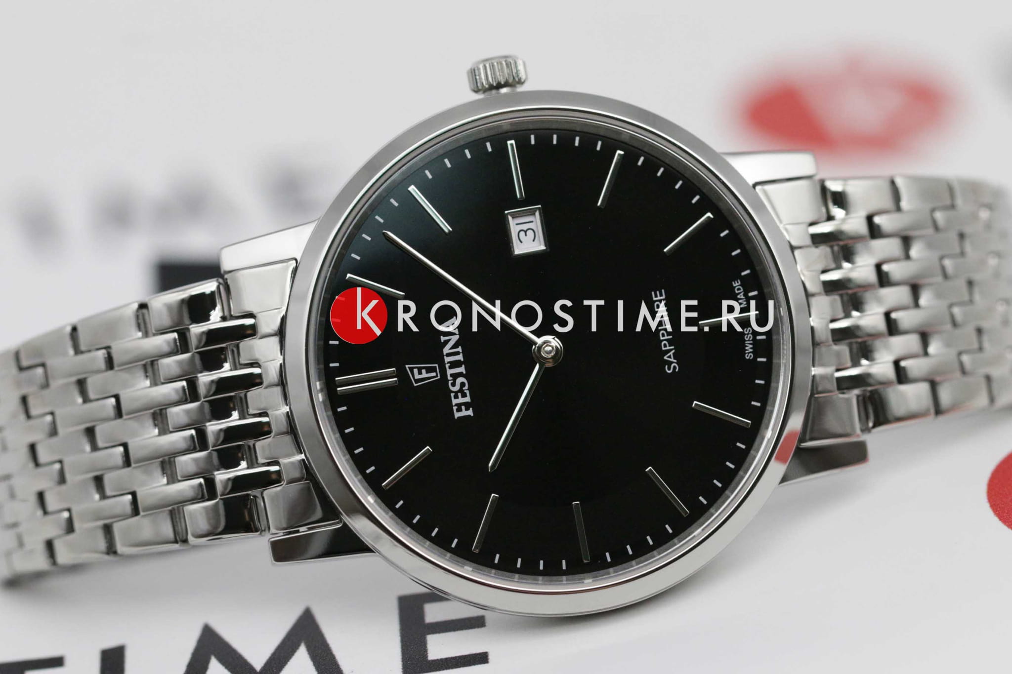 Мужские кварцевые часы с окошком даты Festina Classic F20018/3, кварцевый механизм с высокой точностью. Сапфировое стеклоСапфировое стеклоПрочный и надёжный материал из кристалла сапфира синтетического происхождения, характеризующийся особой твёрдостью и устойчивостью к царапинам и повреждениям. устойчивое к появлению царапин, обладающее высокой прозрачностью. Класс водозащиты: 50 метров, позволит защитить корпус от случайных брызг или капель дождя. Корпус часов изготовлен из стали. Стальной браслет на раскладной застёжкеРаскладная застёжкаТакой тип застёжки используется только на браслетах из металла. Она никогда не раскрывается полностью, происходит разделение на 2 и более частей. Раскладывающая застёжка снизит вероятность потери часов к минимуму.. Циферблат выполнен по технологии Sunray (солнечные лучи). Метки в виде штрихов. Две стрелки. Окошко даты.