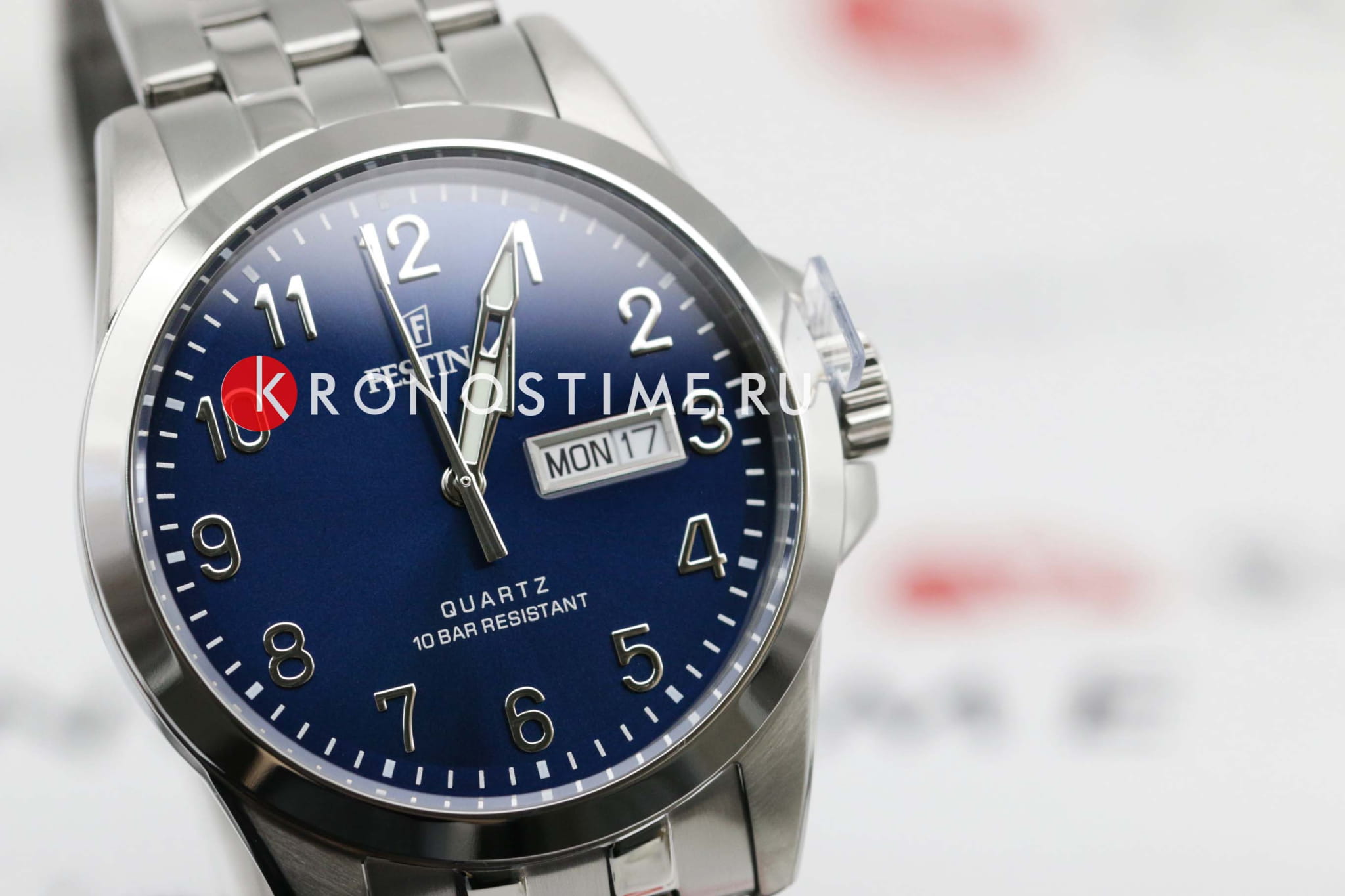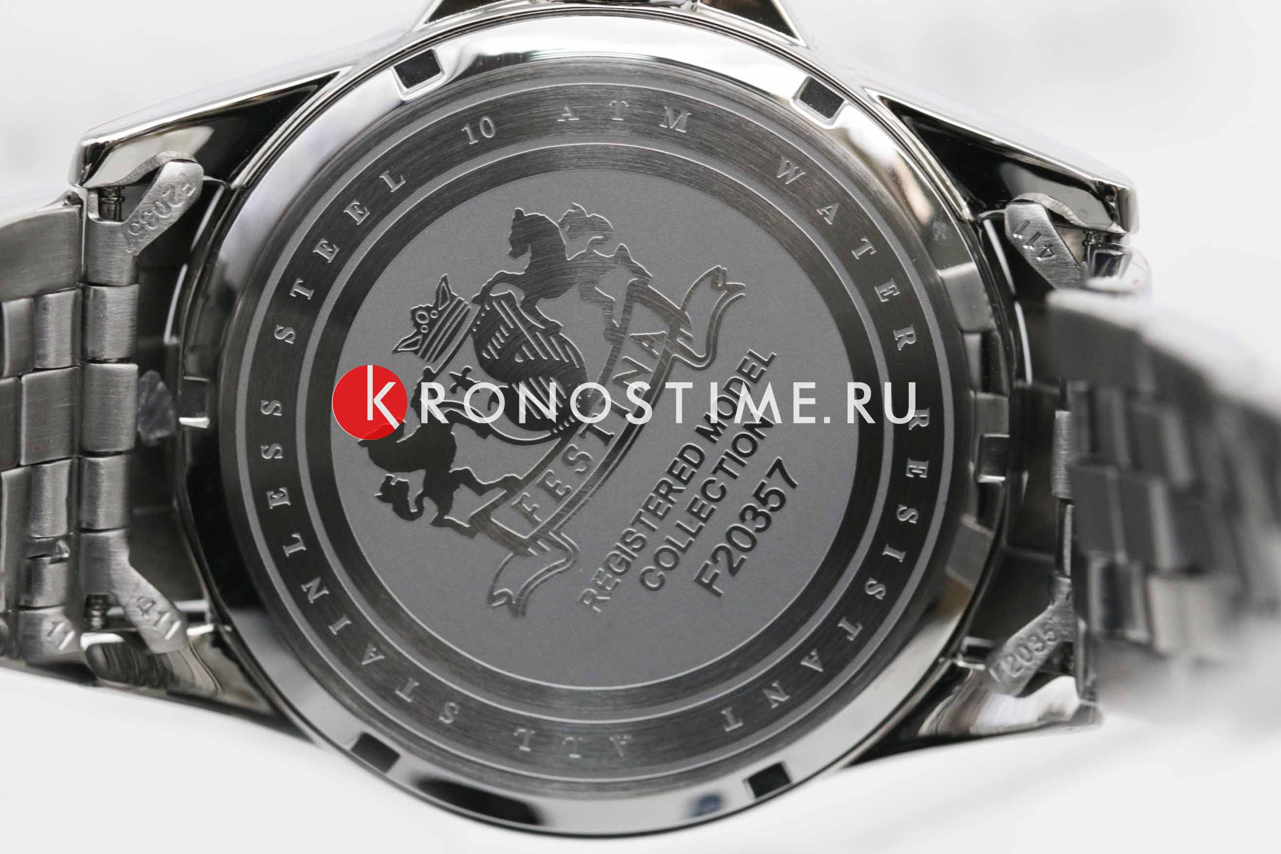 Наручные мужские часы с минеральным стекломМинеральное стеклоМинеральное стекло представляет собой искусственно выращенный минерал кварца. Такое стекло отличается особой устойчивостью к повреждениям и царапинам. Уступает по некоторым качествам сапфировому стеклу. Festina Clasico F20357/C, кварцевый механизм с высокой точностью. Класс водозащиты: 100 метров, позволит плавать, нырять и заниматься другими водными видами спорта. Корпус часов изготовлен из стали серебристого цвета. Браслет на раскладной застёжкеРаскладная застёжкаТакой тип застёжки используется только на браслетах из металла. Она никогда не раскрывается полностью, происходит разделение на 2 и более частей. Раскладывающая застёжка снизит вероятность потери часов к минимуму.. Циферблат выполнен по технологии Sunray (солнечные лучи). Серебристые стрелки и метки. Окошко даты находится в положении 3 часа.