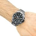 Эксклюзивный хронографХронографФункция позволяет измерять отрезки времени с особой точностью: часы, минуты, секунды. Верным признаком хронографа является наличие на циферблате 3 дополнительных окошек-счётчиков. с секундомеромСекундомерСекундоме́р — прибор, способный измерять интервалы времени с точностью до долей секунды., отличающийся продуманным дизайном и отделкой, придется по вкусу мужчинам, ценящим идеальное соотношение цены и качества.. Минеральное стеклоМинеральное стеклоМинеральное стекло представляет собой искусственно выращенный минерал кварца. Такое стекло отличается особой устойчивостью к повреждениям и царапинам. Уступает по некоторым качествам сапфировому стеклу. устойчивое к появлению царапин, обладающее высокой прозрачностью. Класс водозащиты: 100 метров, позволит защитить корпус от случайных брызг или капель дождя. Метки в виде штрихов. 12-ти и 24-х часовой формат времени. Стрелки и метки с нанесенным люминесцентным покрытиемЛюминесцентное покрытиеПозволяет считывать показания времени в темноте. Производители наносят на стрелки, часовые индексы, безель или поверхность циферблата светонакопительный состав, дающий холодное свечение.