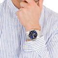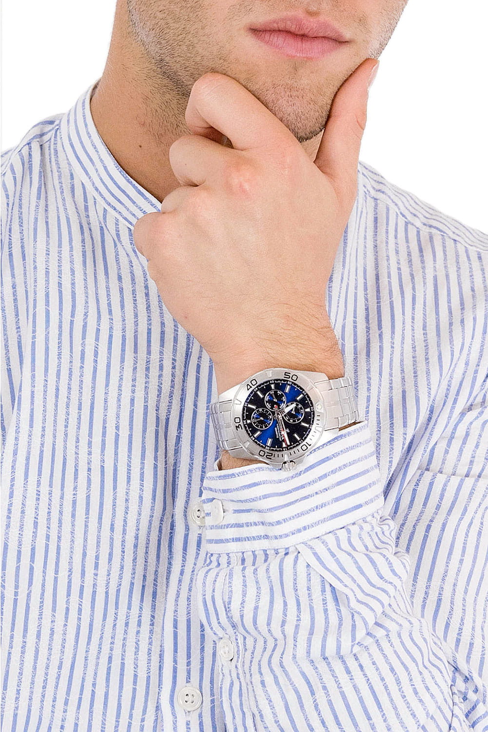 Циферблаты с несколькими счетчиками, спортивный дизайн - данная коллекция позволит вам подобрать часы себе или на подарок, который обязательно понравится. Кварцевый механизм с высокой точностью. Минеральное стеклоМинеральное стеклоМинеральное стекло представляет собой искусственно выращенный минерал кварца. Такое стекло отличается особой устойчивостью к повреждениям и царапинам. Уступает по некоторым качествам сапфировому стеклу. устойчивое к появлению царапин, обладающее высокой прозрачностью. Круглый корпус из гипоаллергенной нержавеющей стали. Вращающийся безельБезельВнешний ободок, закрепляющий стекло. В спортивных часах так называется поворотное кольцо с делениями на циферблате, выполняет роль таймера – замеряет отрезки времени на шкале. Неподвижный безель – элемент декора. Однонаправленно вращающийся безель на дайверских часах позволяет фиксировать моменты погружения и выныривания на поверхность.. Класс водозащиты: 100 метров, позволит защитить корпус от случайных брызг или капель дождя. Метки в виде штрихов. 12-ти и 24-х часовой формат времени, дата и день недели вынесены на отдельные циферблаты. Стрелки с частично удаленным металлом и метки с нанесенным люминесцентным покрытиемЛюминесцентное покрытиеПозволяет считывать показания времени в темноте. Производители наносят на стрелки, часовые индексы, безель или поверхность циферблата светонакопительный состав, дающий холодное свечение., которое светится в темноте после непродолжительной зарядки на свету. Корпус часов изготовлен из нержавеющей стали 316L. Браслет с раскладной застёжкойРаскладная застёжкаТакой тип застёжки используется только на браслетах из металла. Она никогда не раскрывается полностью, происходит разделение на 2 и более частей. Раскладывающая застёжка снизит вероятность потери часов к минимуму..