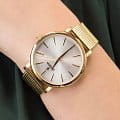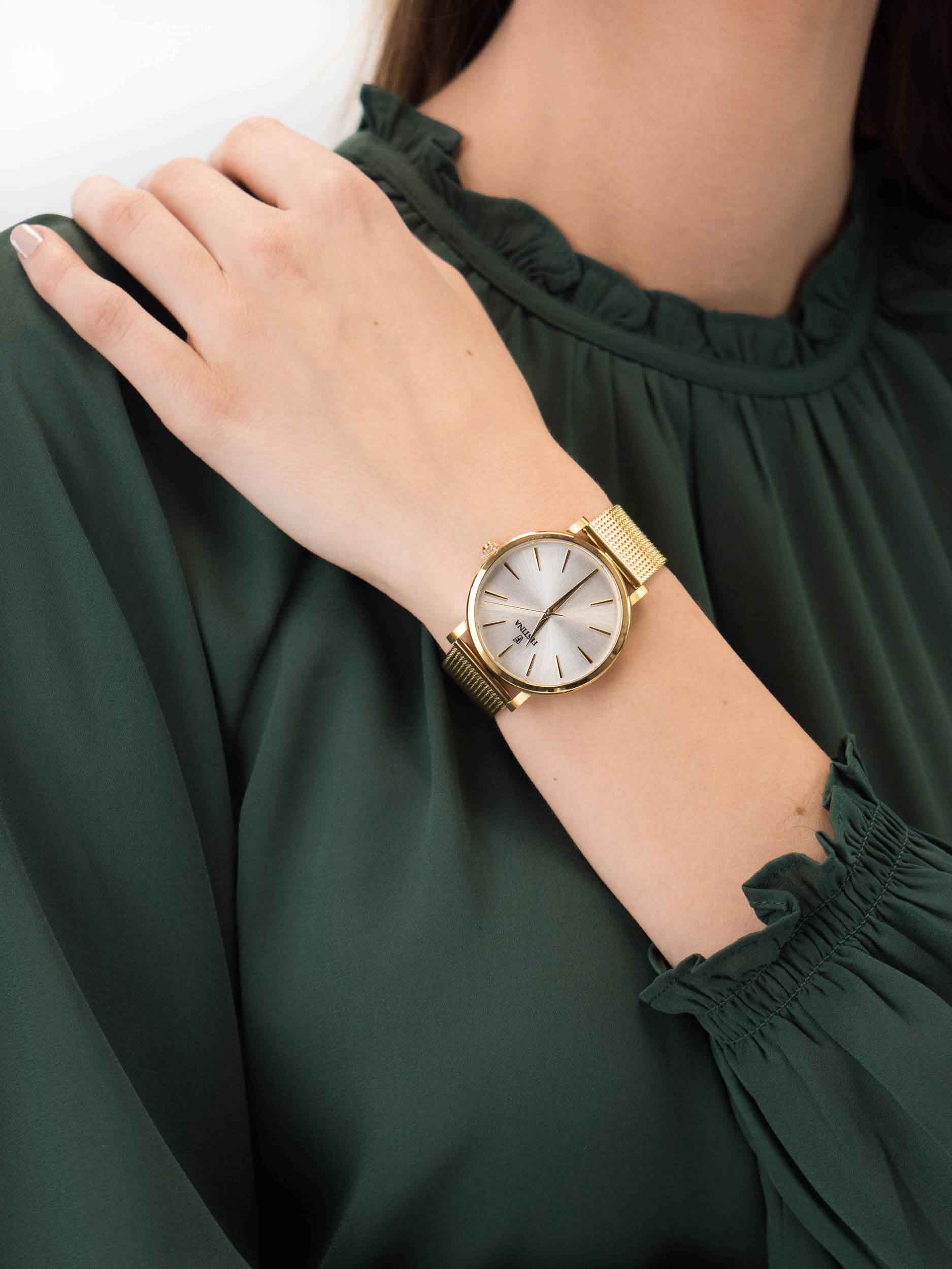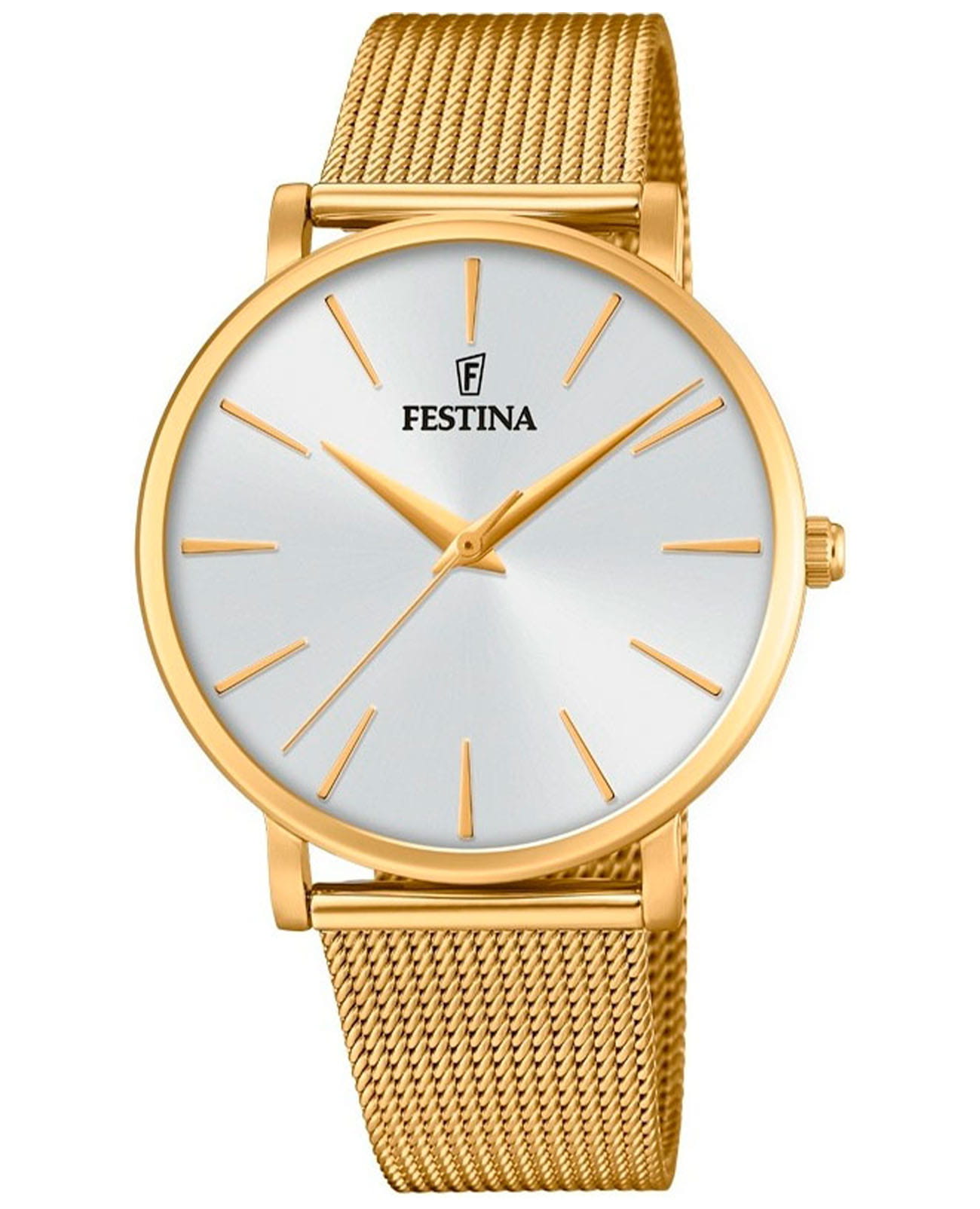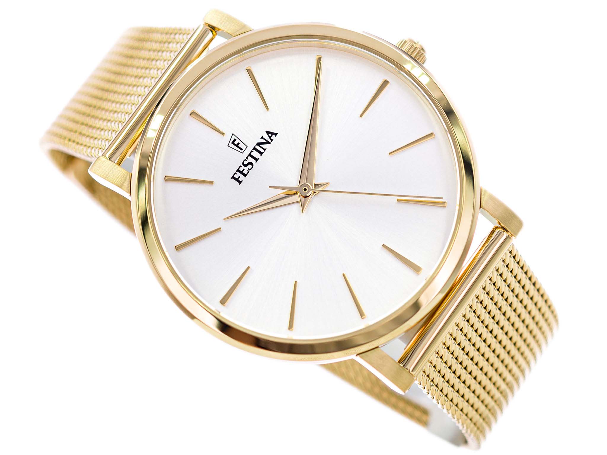 Женские кварцевые часы с минеральным стекломМинеральное стеклоМинеральное стекло представляет собой искусственно выращенный минерал кварца. Такое стекло отличается особой устойчивостью к повреждениям и царапинам. Уступает по некоторым качествам сапфировому стеклу. Festina Boyfriend F20476/1, кварцевый механизм с высокой точностью. Класс водозащиты: 30 метров, позволит защитить корпус от случайных брызг или капель дождя. Корпус часов изготовлен из стали с PVD-покрытиемPVDУльтратонкое покрытие наносится в технике вакуумного напыления, сочетает в себе нитрид титана особой прочности со слоем золота или оксида хрома. Несёт в себе декоративную или защитную функцию.. Стальной браслет миланского плетения на раскладной застёжкеРаскладная застёжкаТакой тип застёжки используется только на браслетах из металла. Она никогда не раскрывается полностью, происходит разделение на 2 и более частей. Раскладывающая застёжка снизит вероятность потери часов к минимуму. с PVD-покрытиемPVDУльтратонкое покрытие наносится в технике вакуумного напыления, сочетает в себе нитрид титана особой прочности со слоем золота или оксида хрома. Несёт в себе декоративную или защитную функцию..