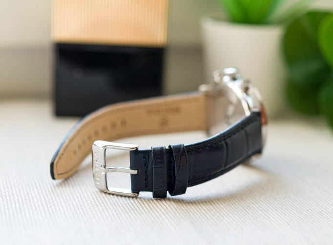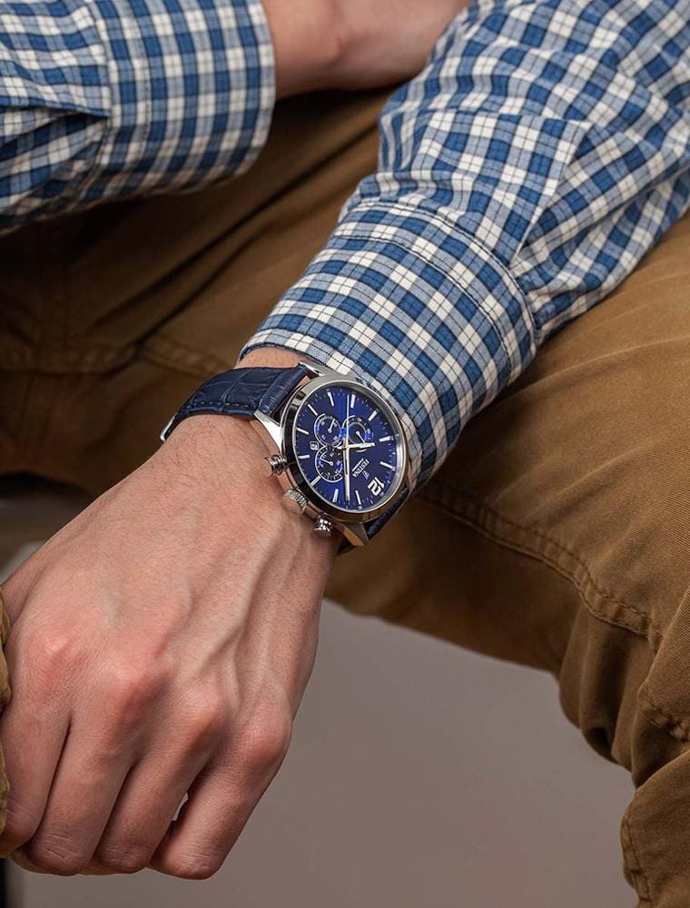 Эксклюзивный хронографХронографФункция позволяет измерять отрезки времени с особой точностью: часы, минуты, секунды. Верным признаком хронографа является наличие на циферблате 3 дополнительных окошек-счётчиков. с секундомеромСекундомерСекундоме́р — прибор, способный измерять интервалы времени с точностью до долей секунды., отличающийся продуманным дизайном и отделкой, придется по вкусу мужчинам, ценящим идеальное соотношение цены и качества. Минеральное стеклоМинеральное стеклоМинеральное стекло представляет собой искусственно выращенный минерал кварца. Такое стекло отличается особой устойчивостью к повреждениям и царапинам. Уступает по некоторым качествам сапфировому стеклу. устойчивое к появлению царапин, обладающее высокой прозрачностью. Циферблат с люминесцентным покрытиемЛюминесцентное покрытиеПозволяет считывать показания времени в темноте. Производители наносят на стрелки, часовые индексы, безель или поверхность циферблата светонакопительный состав, дающий холодное свечение. стрелок. Класс водозащиты: 50 метров, позволит защитить корпус от случайных брызг или капель дождя.