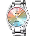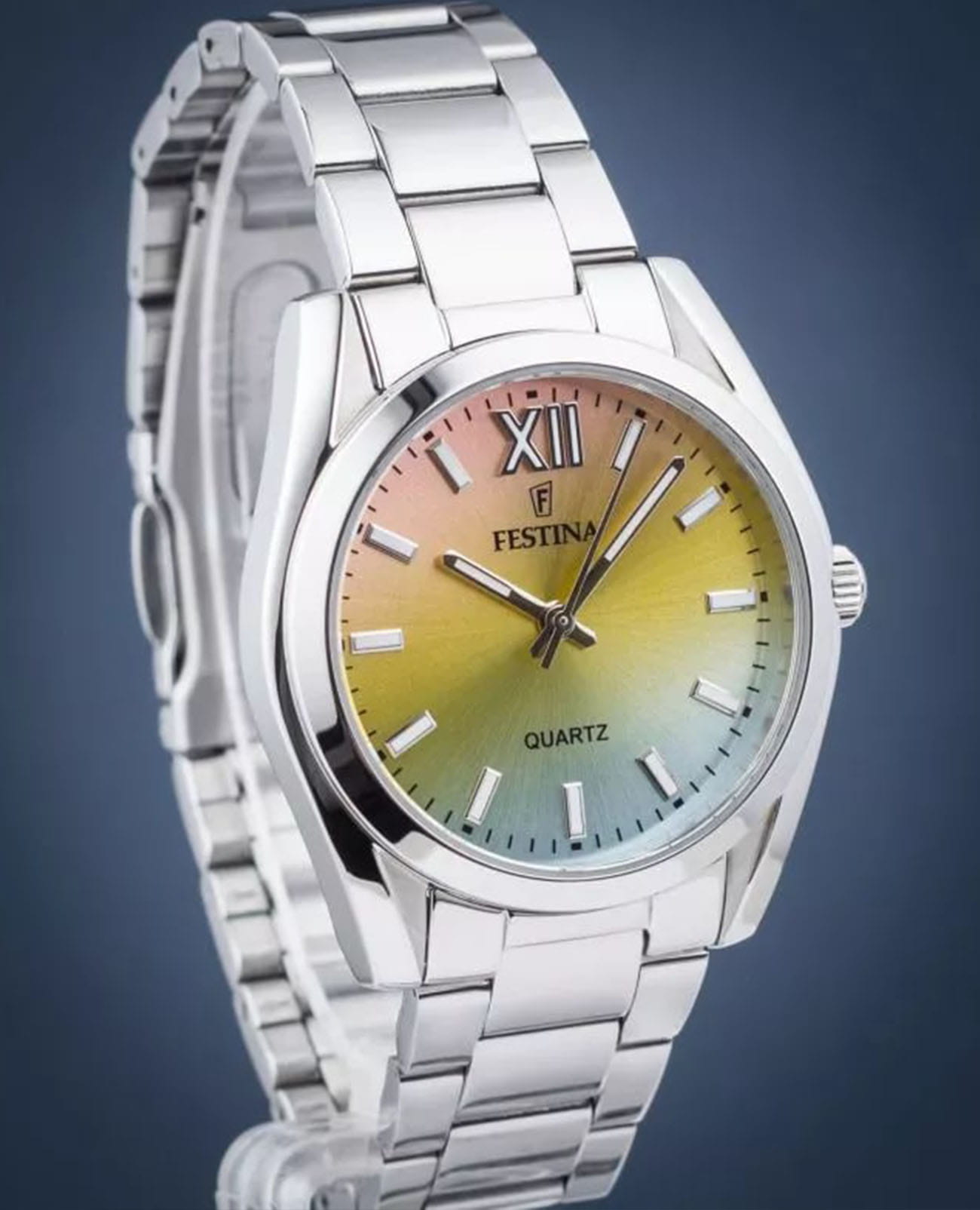 Наручные женские часы с минеральным стекломМинеральное стеклоМинеральное стекло представляет собой искусственно выращенный минерал кварца. Такое стекло отличается особой устойчивостью к повреждениям и царапинам. Уступает по некоторым качествам сапфировому стеклу. Festina Boyfriend F20622/H, кварцевый механизм с высокой точностью. Класс водозащиты: 50 метров, позволит защитить корпус от случайных брызг или капель дождя. Корпус часов изготовлен из стали. Стальной браслет на раскладной застёжкеРаскладная застёжкаТакой тип застёжки используется только на браслетах из металла. Она никогда не раскрывается полностью, происходит разделение на 2 и более частей. Раскладывающая застёжка снизит вероятность потери часов к минимуму.. Стрелки и метки с люминесцентным покрытиемЛюминесцентное покрытиеПозволяет считывать показания времени в темноте. Производители наносят на стрелки, часовые индексы, безель или поверхность циферблата светонакопительный состав, дающий холодное свечение..