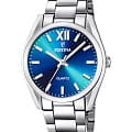 Наручные женские часы с минеральным стекломМинеральное стеклоМинеральное стекло представляет собой искусственно выращенный минерал кварца. Такое стекло отличается особой устойчивостью к повреждениям и царапинам. Уступает по некоторым качествам сапфировому стеклу. Festina Boyfriend F20622/I, кварцевый механизм с высокой точностью. Класс водозащиты: 50 метров, позволит защитить корпус от случайных брызг или капель дождя. Корпус часов изготовлен из стали. Стальной браслет на раскладной застёжкеРаскладная застёжкаТакой тип застёжки используется только на браслетах из металла. Она никогда не раскрывается полностью, происходит разделение на 2 и более частей. Раскладывающая застёжка снизит вероятность потери часов к минимуму.. Стрелки и метки с люминесцентным покрытиемЛюминесцентное покрытиеПозволяет считывать показания времени в темноте. Производители наносят на стрелки, часовые индексы, безель или поверхность циферблата светонакопительный состав, дающий холодное свечение..