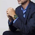 Эксклюзивный хронографХронографФункция позволяет измерять отрезки времени с особой точностью: часы, минуты, секунды. Верным признаком хронографа является наличие на циферблате 3 дополнительных окошек-счётчиков. с секундомеромСекундомерСекундоме́р — прибор, способный измерять интервалы времени с точностью до долей секунды. и тахиметромТахиметрРазмеченная шкала, располагается на ободке или безеле часов. Тахиметр позволяет рассчитать скорость на определённом участке пути, расстояние измеряется в километрах или милях., отличающийся продуманным дизайном и отделкой, придется по вкусу мужчинам, ценящим идеальное соотношение цены и качества. Минеральное стеклоМинеральное стеклоМинеральное стекло представляет собой искусственно выращенный минерал кварца. Такое стекло отличается особой устойчивостью к повреждениям и царапинам. Уступает по некоторым качествам сапфировому стеклу. устойчивое к появлению царапин, обладающее высокой прозрачностью. Циферблат с люминесцентным покрытиемЛюминесцентное покрытиеПозволяет считывать показания времени в темноте. Производители наносят на стрелки, часовые индексы, безель или поверхность циферблата светонакопительный состав, дающий холодное свечение. стрелок и меток. Корпус и браслет из стали с PVDPVDУльтратонкое покрытие наносится в технике вакуумного напыления, сочетает в себе нитрид титана особой прочности со слоем золота или оксида хрома. Несёт в себе декоративную или защитную функцию. покрытием. Класс водозащиты: 100 метров, позволит плавать, нырять и заниматься другими водными видами спорта. Браслет с раскладной застёжкойРаскладная застёжкаТакой тип застёжки используется только на браслетах из металла. Она никогда не раскрывается полностью, происходит разделение на 2 и более частей. Раскладывающая застёжка снизит вероятность потери часов к минимуму..