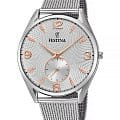 Яркий стиль и функциональность этих часов придутся по душе каждому. циферблат защищен минеральным стекломМинеральное стеклоМинеральное стекло представляет собой искусственно выращенный минерал кварца. Такое стекло отличается особой устойчивостью к повреждениям и царапинам. Уступает по некоторым качествам сапфировому стеклу.. Кварцевый механизм с высокой точностью. Метки украшены кристаллами. Класс водозащиты: 30 метров, позволит защитить корпус от капель дождя. Корпус часов изготовлен из нержавеющей стали. Циферблат с люминесцентным покрытиемЛюминесцентное покрытиеПозволяет считывать показания времени в темноте. Производители наносят на стрелки, часовые индексы, безель или поверхность циферблата светонакопительный состав, дающий холодное свечение. стрелок. Удобный и надежный стальной браслет миланского плетения с регулируемой застежкой.