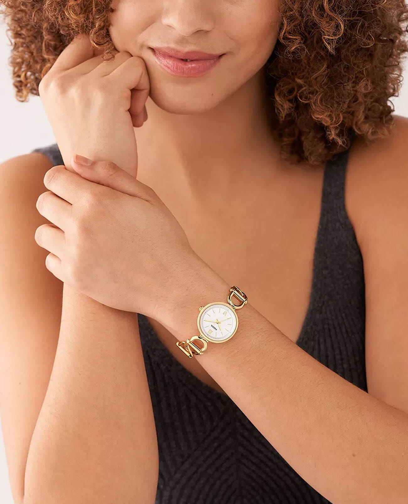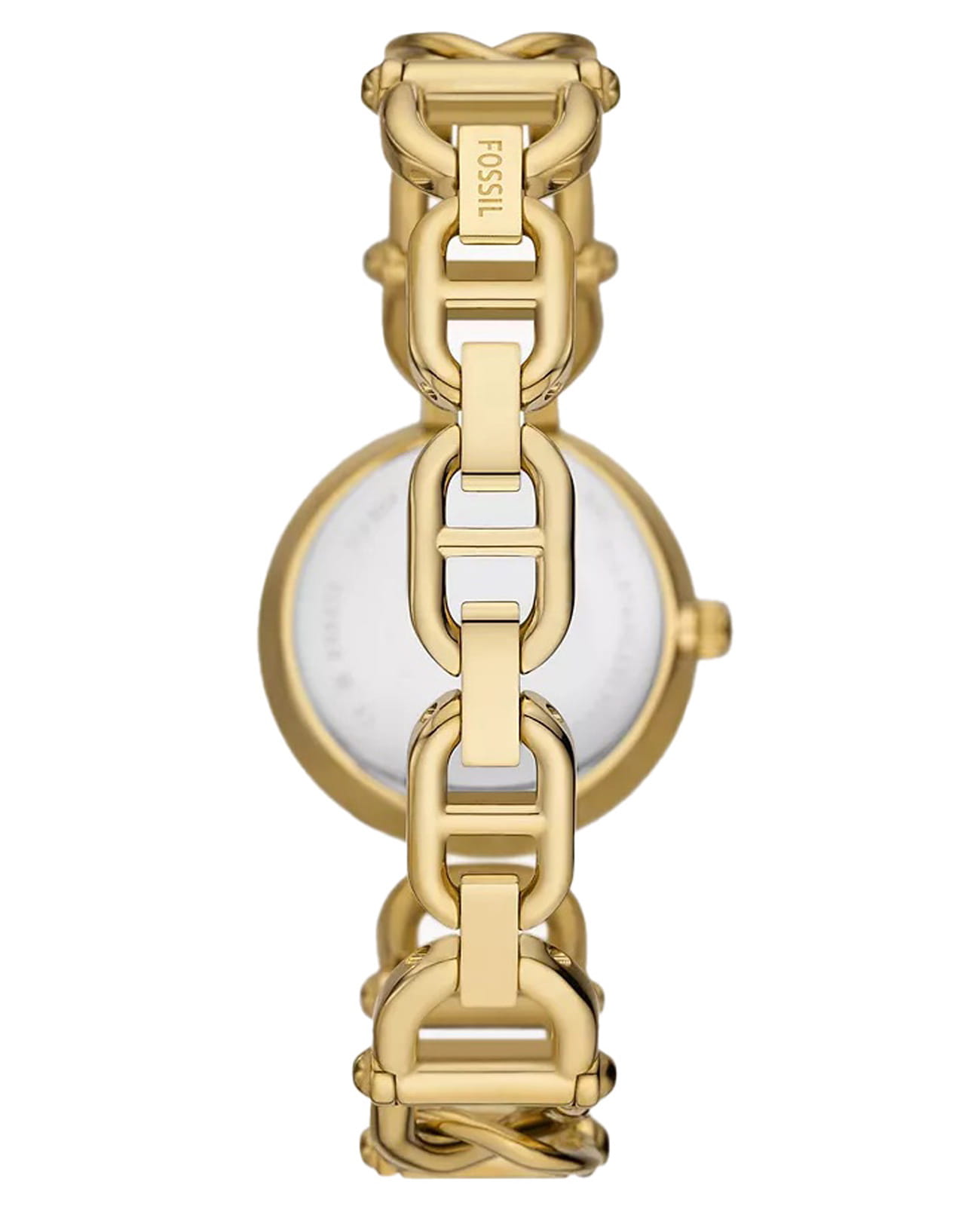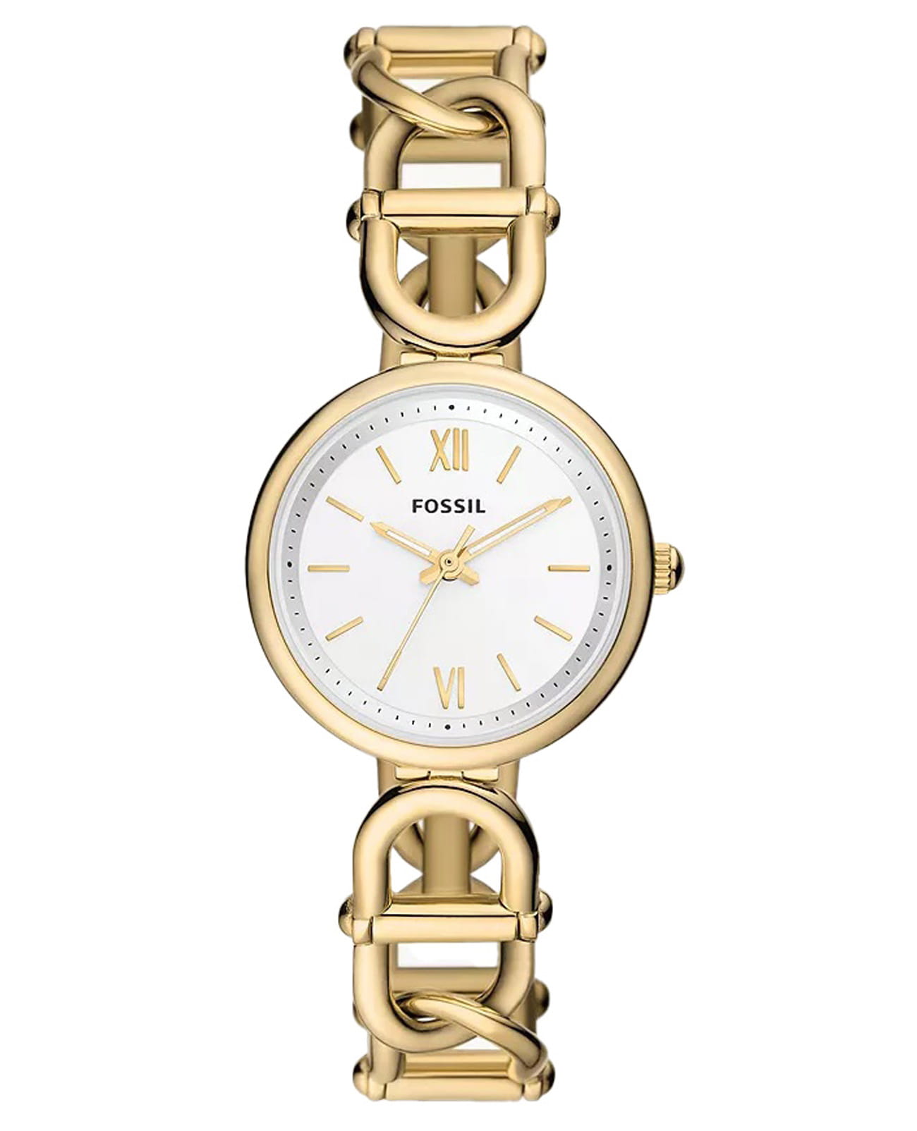Женские американские часы с минеральным стекломМинеральное стеклоМинеральное стекло представляет собой искусственно выращенный минерал кварца. Такое стекло отличается особой устойчивостью к повреждениям и царапинам. Уступает по некоторым качествам сапфировому стеклу. Fossil Carlie ES5272, кварцевый механизм с высокой точностью. Корпус и браслет часов изготовлены из нержавеющей стали с IP-покрытиемIP-покрытиеМетод ионного напыления. Демонстрирует повышенную устойчивость к истиранию, окислению и химическим веществам. Под воздействием высокого давления и температуры около 1500°C молекулы металла надёжно соединяются с частицами корпуса часов.. Стрелки с люминесцентным покрытиемЛюминесцентное покрытиеПозволяет считывать показания времени в темноте. Производители наносят на стрелки, часовые индексы, безель или поверхность циферблата светонакопительный состав, дающий холодное свечение.. Рифленая заводная головка с защитой. Класс водозащиты: 50 метров, позволит защитить корпус от случайных брызг или капель дождя. Стальной браслет в виде звеньев на ювелирной застежке.