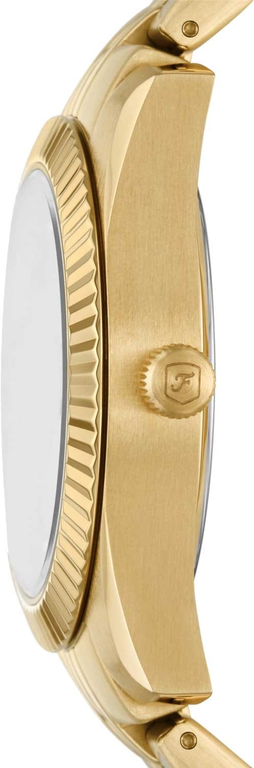 Часы Fossil ES5338 - это стильный аксессуар, который станет ярким дополнением к вашему повседневному или вечернему образу. Эти наручные часы выделяются своим утонченным дизайном и высоким качеством исполнения. Корпус изготовлен из стали с золотистым IP-покрытиемIP-покрытиеМетод ионного напыления. Демонстрирует повышенную устойчивость к истиранию, окислению и химическим веществам. Под воздействием высокого давления и температуры около 1500°C молекулы металла надёжно соединяются с частицами корпуса часов., что придаёт ему долговечность и изысканный внешний вид. Циферблат золотистого цвета, выполненный по технологии Sunray, украшен кристаллами, которые добавляют ему блеска и элегантности. Часы снабжены римскими цифрами VI и XII, а также метками в виде точек, что делает их не только красивыми, но и функциональными. Удобное окошко даты с увеличительным стеклом расположено в положении 3 часа, облегчая считывание информации. Особое внимание привлекает рифленый безельБезельВнешний ободок, закрепляющий стекло. В спортивных часах так называется поворотное кольцо с делениями на циферблате, выполняет роль таймера – замеряет отрезки времени на шкале. Неподвижный безель – элемент декора. Однонаправленно вращающийся безель на дайверских часах позволяет фиксировать моменты погружения и выныривания на поверхность. с золотистым IP-покрытиемIP-покрытиеМетод ионного напыления. Демонстрирует повышенную устойчивость к истиранию, окислению и химическим веществам. Под воздействием высокого давления и температуры около 1500°C молекулы металла надёжно соединяются с частицами корпуса часов.. Люминесцентное покрытиеЛюминесцентное покрытиеПозволяет считывать показания времени в темноте. Производители наносят на стрелки, часовые индексы, безель или поверхность циферблата светонакопительный состав, дающий холодное свечение. на стрелках и метках обеспечивает отличную видимость в темноте. Заводная головка имеет рифленую поверхность, что позволяет легко настраивать время. Браслет из полированной стали с IP-покрытиемIP-покрытиеМетод ионного напыления. Демонстрирует повышенную устойчивость к истиранию, окислению и химическим веществам. Под воздействием высокого давления и температуры около 1500°C молекулы металла надёжно соединяются с частицами корпуса часов. и раскладной застёжкойРаскладная застёжкаТакой тип застёжки используется только на браслетах из металла. Она никогда не раскрывается полностью, происходит разделение на 2 и более частей. Раскладывающая застёжка снизит вероятность потери часов к минимуму. обеспечивает комфортное ношение и надежную фиксацию на запястье. Водозащита 50WR защищает механизм от случайных брызг. Минеральное стеклоМинеральное стеклоМинеральное стекло представляет собой искусственно выращенный минерал кварца. Такое стекло отличается особой устойчивостью к повреждениям и царапинам. Уступает по некоторым качествам сапфировому стеклу. защищает циферблат от повреждений. Часы имеют компактные размеры: диаметр корпуса составляет 32 мм, ширина браслета - 16 мм, а его длина - 175 мм. Этот аксессуар от Fossil подчеркнёт вашу индивидуальность и станет верным спутником в любых ситуациях.