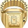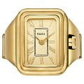 Уникальные часы-кольцо с минеральным стекломМинеральное стеклоМинеральное стекло представляет собой искусственно выращенный минерал кварца. Такое стекло отличается особой устойчивостью к повреждениям и царапинам. Уступает по некоторым качествам сапфировому стеклу. Fossil Raquel Ring ES5343, кварцевый механизм с высокой точностью. Корпус и браслет часов изготовлены из нержавеющей стали с IP-покрытиемIP-покрытиеМетод ионного напыления. Демонстрирует повышенную устойчивость к истиранию, окислению и химическим веществам. Под воздействием высокого давления и температуры около 1500°C молекулы металла надёжно соединяются с частицами корпуса часов.. Класс водозащиты: 50 метров, позволит защитить корпус от случайных брызг или капель дождя. Циферблат выполнен с метками в виде штрихов. С помощью расширительного ремешка Вы сможете надеть модель на любой палец.