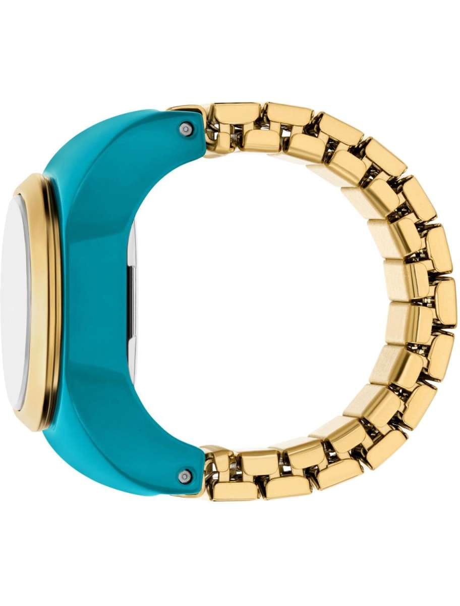 Женские кварцевые часы-кольцо Fossil — это изысканный и универсальный аксессуар, сочетающий модный дизайн и функциональность. Модель ES5415 выполнена в виде кольца с круглым корпусом диаметром 15 мм из нержавеющей стали с покрытием цвета жёлтого золота и глянцевым голубым керамическим напылением. Циферблат голубого цвета оформлен двумя стрелками без индикации даты. Циферблат защищён минеральным стекломМинеральное стеклоМинеральное стекло представляет собой искусственно выращенный минерал кварца. Такое стекло отличается особой устойчивостью к повреждениям и царапинам. Уступает по некоторым качествам сапфировому стеклу.. Часы оснащены расширяемым браслетом (expansion band) из стали с IP-покрытиемIP-покрытиеМетод ионного напыления. Демонстрирует повышенную устойчивость к истиранию, окислению и химическим веществам. Под воздействием высокого давления и температуры около 1500°C молекулы металла надёжно соединяются с частицами корпуса часов. цвета жёлтого золота, не имеющим застёжки, что обеспечивает удобную посадку на пальце (размер кольца 6,5–8). Водонепроницаемость 50 м позволяет использовать часы в повседневных условиях. Идеальный выбор для тех, кто ценит стиль и американское качество.