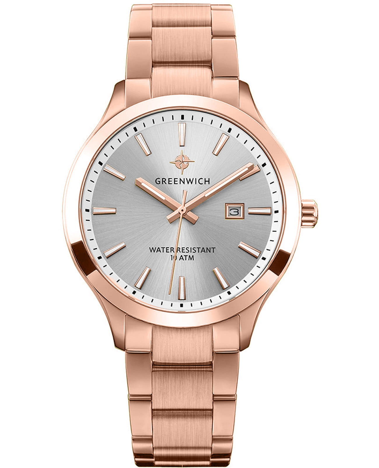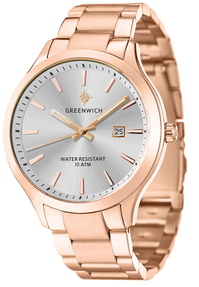 Мужские наручные часы Greenwich 041.40.33 представляют собой классический вариант для повседневной носки. Циферблат украшается брендовым логотипом, изображающим Розу Ветров. Эмблема мореплавательского духа символизирует удачу, стремление достигнуть поставленной цели. Часы характеризуются традиционными формами, лаконичным исполнением, что делает модель элегантным дополнением к деловому костюму. Надёжный корпус из нержавеющей стали с IP-покрытиемIP-покрытиеМетод ионного напыления. Демонстрирует повышенную устойчивость к истиранию, окислению и химическим веществам. Под воздействием высокого давления и температуры около 1500°C молекулы металла надёжно соединяются с частицами корпуса часов. спасает японский механизм от повреждений и ударов. Минеральное стеклоМинеральное стеклоМинеральное стекло представляет собой искусственно выращенный минерал кварца. Такое стекло отличается особой устойчивостью к повреждениям и царапинам. Уступает по некоторым качествам сапфировому стеклу. отличается устойчивостью к образованию царапин на поверхности. Стрелки и метки с люминесцентным покрытиемЛюминесцентное покрытиеПозволяет считывать показания времени в темноте. Производители наносят на стрелки, часовые индексы, безель или поверхность циферблата светонакопительный состав, дающий холодное свечение.. Стальной браслет с IP-покрытиемIP-покрытиеМетод ионного напыления. Демонстрирует повышенную устойчивость к истиранию, окислению и химическим веществам. Под воздействием высокого давления и температуры около 1500°C молекулы металла надёжно соединяются с частицами корпуса часов. на раскладной застёжкеРаскладная застёжкаТакой тип застёжки используется только на браслетах из металла. Она никогда не раскрывается полностью, происходит разделение на 2 и более частей. Раскладывающая застёжка снизит вероятность потери часов к минимуму..