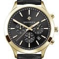 Мужские наручные часы-хронографХронографФункция позволяет измерять отрезки времени с особой точностью: часы, минуты, секунды. Верным признаком хронографа является наличие на циферблате 3 дополнительных окошек-счётчиков. Greenwich Skipper GW 043.21.31 представляют собой классический вариант для повседневной носки. Циферблат украшается брендовым логотипом, изображающим Розу Ветров. Эмблема мореплавательского духа символизирует удачу, стремление достигнуть поставленной цели. Часы характеризуются традиционными формами, лаконичным исполнением, что делает модель элегантным дополнением к деловому костюму. Надёжный корпус из нержавеющей стали с PVD-покрытиемPVDУльтратонкое покрытие наносится в технике вакуумного напыления, сочетает в себе нитрид титана особой прочности со слоем золота или оксида хрома. Несёт в себе декоративную или защитную функцию. спасает японский механизм от повреждений и ударов. Минеральное стеклоМинеральное стеклоМинеральное стекло представляет собой искусственно выращенный минерал кварца. Такое стекло отличается особой устойчивостью к повреждениям и царапинам. Уступает по некоторым качествам сапфировому стеклу. отличается устойчивостью к образованию царапин на поверхности. СекундомерСекундомерСекундоме́р — прибор, способный измерять интервалы времени с точностью до долей секунды.. Стрелки и метки с люминесцентным покрытиемЛюминесцентное покрытиеПозволяет считывать показания времени в темноте. Производители наносят на стрелки, часовые индексы, безель или поверхность циферблата светонакопительный состав, дающий холодное свечение.. Кожаный ремешок на стандартной застёжке. Окошко даты находится в положении между 4 и 5 часов. Класс водозащиты: 100 метров, позволит плавать, нырять и заниматься другими водными видами спорта.