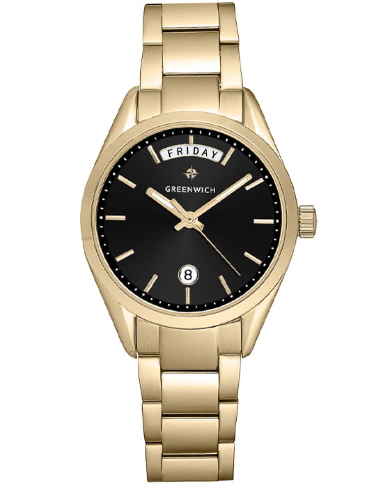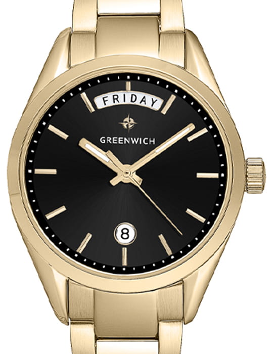 Мужские кварцевые часы с минеральным стекломМинеральное стеклоМинеральное стекло представляет собой искусственно выращенный минерал кварца. Такое стекло отличается особой устойчивостью к повреждениям и царапинам. Уступает по некоторым качествам сапфировому стеклу. Greenwich GW 351.20.31. Корпус часов изготовлен из стали PVD-покрытиемPVDУльтратонкое покрытие наносится в технике вакуумного напыления, сочетает в себе нитрид титана особой прочности со слоем золота или оксида хрома. Несёт в себе декоративную или защитную функцию.. Стрелки с люминесцентным покрытиемЛюминесцентное покрытиеПозволяет считывать показания времени в темноте. Производители наносят на стрелки, часовые индексы, безель или поверхность циферблата светонакопительный состав, дающий холодное свечение.. Класс водозащиты: 50 метров, позволит защитить корпус от случайных брызг или капель дождя. Стальной браслет на раскладной застёжкеРаскладная застёжкаТакой тип застёжки используется только на браслетах из металла. Она никогда не раскрывается полностью, происходит разделение на 2 и более частей. Раскладывающая застёжка снизит вероятность потери часов к минимуму. с PVD-покрытиемPVDУльтратонкое покрытие наносится в технике вакуумного напыления, сочетает в себе нитрид титана особой прочности со слоем золота или оксида хрома. Несёт в себе декоративную или защитную функцию..Окошко даты находится в положении 6 часа.
