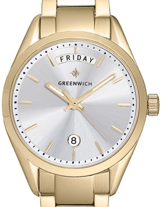 Мужские кварцевые часы с минеральным стекломМинеральное стеклоМинеральное стекло представляет собой искусственно выращенный минерал кварца. Такое стекло отличается особой устойчивостью к повреждениям и царапинам. Уступает по некоторым качествам сапфировому стеклу. Greenwich GW 351.20.33. Корпус часов изготовлен из стали PVD-покрытиемPVDУльтратонкое покрытие наносится в технике вакуумного напыления, сочетает в себе нитрид титана особой прочности со слоем золота или оксида хрома. Несёт в себе декоративную или защитную функцию.. Стрелки с люминесцентным покрытиемЛюминесцентное покрытиеПозволяет считывать показания времени в темноте. Производители наносят на стрелки, часовые индексы, безель или поверхность циферблата светонакопительный состав, дающий холодное свечение.. Класс водозащиты: 50 метров, позволит защитить корпус от случайных брызг или капель дождя. Стальной браслет на раскладной застёжкеРаскладная застёжкаТакой тип застёжки используется только на браслетах из металла. Она никогда не раскрывается полностью, происходит разделение на 2 и более частей. Раскладывающая застёжка снизит вероятность потери часов к минимуму. с PVD-покрытиемPVDУльтратонкое покрытие наносится в технике вакуумного напыления, сочетает в себе нитрид титана особой прочности со слоем золота или оксида хрома. Несёт в себе декоративную или защитную функцию..Окошко даты находится в положении 6 часа.