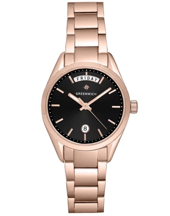 Мужские кварцевые часы с минеральным стекломМинеральное стеклоМинеральное стекло представляет собой искусственно выращенный минерал кварца. Такое стекло отличается особой устойчивостью к повреждениям и царапинам. Уступает по некоторым качествам сапфировому стеклу. Greenwich GW 351.40.31. Корпус часов изготовлен из стали PVD-покрытиемPVDУльтратонкое покрытие наносится в технике вакуумного напыления, сочетает в себе нитрид титана особой прочности со слоем золота или оксида хрома. Несёт в себе декоративную или защитную функцию.. Стрелки с люминесцентным покрытиемЛюминесцентное покрытиеПозволяет считывать показания времени в темноте. Производители наносят на стрелки, часовые индексы, безель или поверхность циферблата светонакопительный состав, дающий холодное свечение.. Класс водозащиты: 50 метров, позволит защитить корпус от случайных брызг или капель дождя. Стальной браслет на раскладной застёжкеРаскладная застёжкаТакой тип застёжки используется только на браслетах из металла. Она никогда не раскрывается полностью, происходит разделение на 2 и более частей. Раскладывающая застёжка снизит вероятность потери часов к минимуму. с PVD-покрытиемPVDУльтратонкое покрытие наносится в технике вакуумного напыления, сочетает в себе нитрид титана особой прочности со слоем золота или оксида хрома. Несёт в себе декоративную или защитную функцию..Окошко даты находится в положении 6 часа.