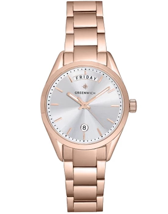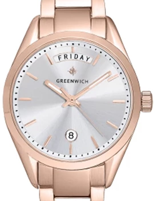 Мужские кварцевые часы с минеральным стекломМинеральное стеклоМинеральное стекло представляет собой искусственно выращенный минерал кварца. Такое стекло отличается особой устойчивостью к повреждениям и царапинам. Уступает по некоторым качествам сапфировому стеклу. Greenwich GW 351.40.33. Корпус часов изготовлен из стали PVD-покрытиемPVDУльтратонкое покрытие наносится в технике вакуумного напыления, сочетает в себе нитрид титана особой прочности со слоем золота или оксида хрома. Несёт в себе декоративную или защитную функцию.. Стрелки с люминесцентным покрытиемЛюминесцентное покрытиеПозволяет считывать показания времени в темноте. Производители наносят на стрелки, часовые индексы, безель или поверхность циферблата светонакопительный состав, дающий холодное свечение.. Класс водозащиты: 50 метров, позволит защитить корпус от случайных брызг или капель дождя. Стальной браслет на раскладной застёжкеРаскладная застёжкаТакой тип застёжки используется только на браслетах из металла. Она никогда не раскрывается полностью, происходит разделение на 2 и более частей. Раскладывающая застёжка снизит вероятность потери часов к минимуму. с PVD-покрытиемPVDУльтратонкое покрытие наносится в технике вакуумного напыления, сочетает в себе нитрид титана особой прочности со слоем золота или оксида хрома. Несёт в себе декоративную или защитную функцию..Окошко даты находится в положении 6 часа.