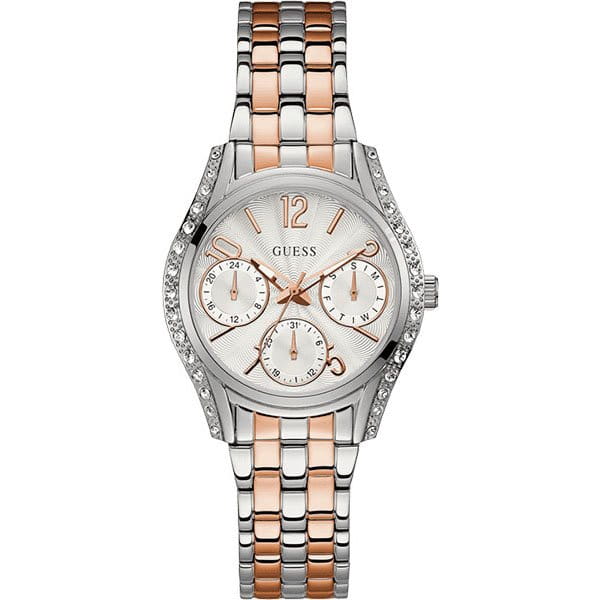Нашли дешевле?Классические наручные женские часы. Корпус часов выполнен из высокопрочной стали с антикоррозийными свойствами . Дизайн циферблата и стрелок исполнен в строгом и лаконичном стиле бренда Guess. Часы укомплектованы минеральным стеклом, устойчивым к появлению царапин и удерживаются на руке браслетом из нержавеющей стали. Часы станут прекрасным дополнением к образу.