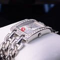 Яркий блестящий браслет с двумя линиями звеньев. Стальной корпус прямоугольной формы. Россыпь из кристаллов добавляет привлекательности стильному аксессуару. Аналоговый способ отображения времени. Оригинальный дизайн временных меток. Кварцевый механизм. Минеральное стекло. Водонепроницаемость в 10 WR.