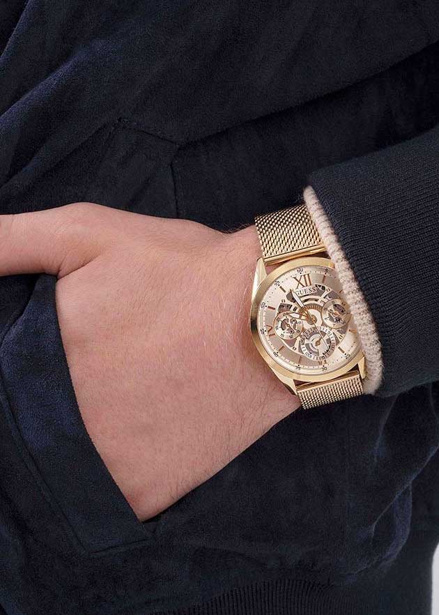 Мужские наручные часы Guess Dress Steel GW0368G2, кварцевый механизм с высокой точностью. Класс водозащиты: 30 метров, позволит защитить корпус от случайных брызг или капель дождя. Корпус часов изготовлен из стали, золотистого цвета.