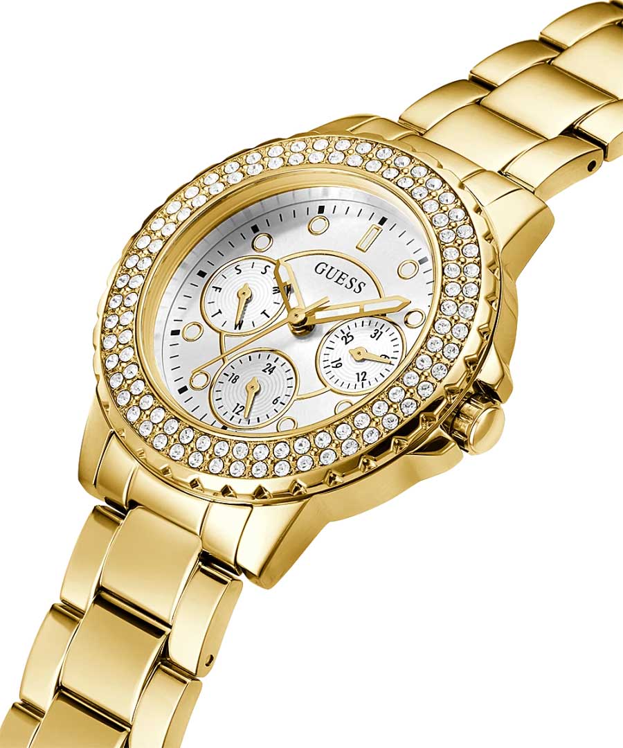 Женские наручные часы Guess Sport Steel GW0410L2, кварцевый механизм с высокой точностью. Класс водозащиты: 30 метров, позволит защитить корпус от случайных брызг или капель дождя. Корпус часов изготовлен из стали, золотистого цвета.