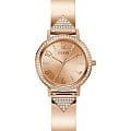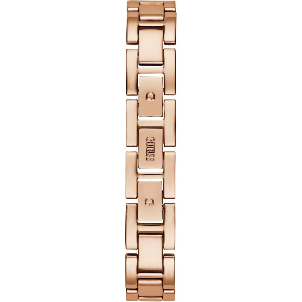 Женские наручные часы Guess Dress Steel GW0474L3 с минеральным стекломМинеральное стеклоМинеральное стекло представляет собой искусственно выращенный минерал кварца. Такое стекло отличается особой устойчивостью к повреждениям и царапинам. Уступает по некоторым качествам сапфировому стеклу., кварцевый механизм с высокой точностью. Класс водозащиты: 30 метров, позволит защитить корпус от случайных брызг или капель дождя. Корпус часов изготовлен из стали с IP-покрытиемIP-покрытиеМетод ионного напыления. Демонстрирует повышенную устойчивость к истиранию, окислению и химическим веществам. Под воздействием высокого давления и температуры около 1500°C молекулы металла надёжно соединяются с частицами корпуса часов.. Браслет с раскладной застёжкойРаскладная застёжкаТакой тип застёжки используется только на браслетах из металла. Она никогда не раскрывается полностью, происходит разделение на 2 и более частей. Раскладывающая застёжка снизит вероятность потери часов к минимуму.