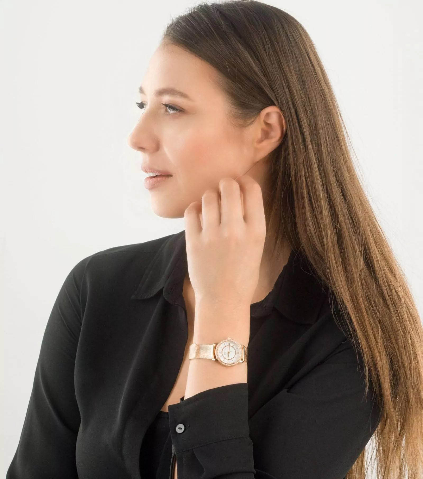 Женские наручные часы Guess GW0534L3 с минеральным стекломМинеральное стеклоМинеральное стекло представляет собой искусственно выращенный минерал кварца. Такое стекло отличается особой устойчивостью к повреждениям и царапинам. Уступает по некоторым качествам сапфировому стеклу., кварцевый механизм с высокой точностью. Класс водозащиты: 30 метров, позволит защитить корпус от случайных брызг или капель дождя. Корпус часов изготовлен из стали с IP-покрытиемIP-покрытиеМетод ионного напыления. Демонстрирует повышенную устойчивость к истиранию, окислению и химическим веществам. Под воздействием высокого давления и температуры около 1500°C молекулы металла надёжно соединяются с частицами корпуса часов.. Стальной браслет на раскладной застёжкеРаскладная застёжкаТакой тип застёжки используется только на браслетах из металла. Она никогда не раскрывается полностью, происходит разделение на 2 и более частей. Раскладывающая застёжка снизит вероятность потери часов к минимуму. с IP-покрытиемIP-покрытиеМетод ионного напыления. Демонстрирует повышенную устойчивость к истиранию, окислению и химическим веществам. Под воздействием высокого давления и температуры около 1500°C молекулы металла надёжно соединяются с частицами корпуса часов.. Корпус и циферблат украшены кристаллами. Циферблат выполнен по технологии Sunray (солнечные лучи). Метки в виде штрихов и арабских цифр. Рифленая заводная головка.