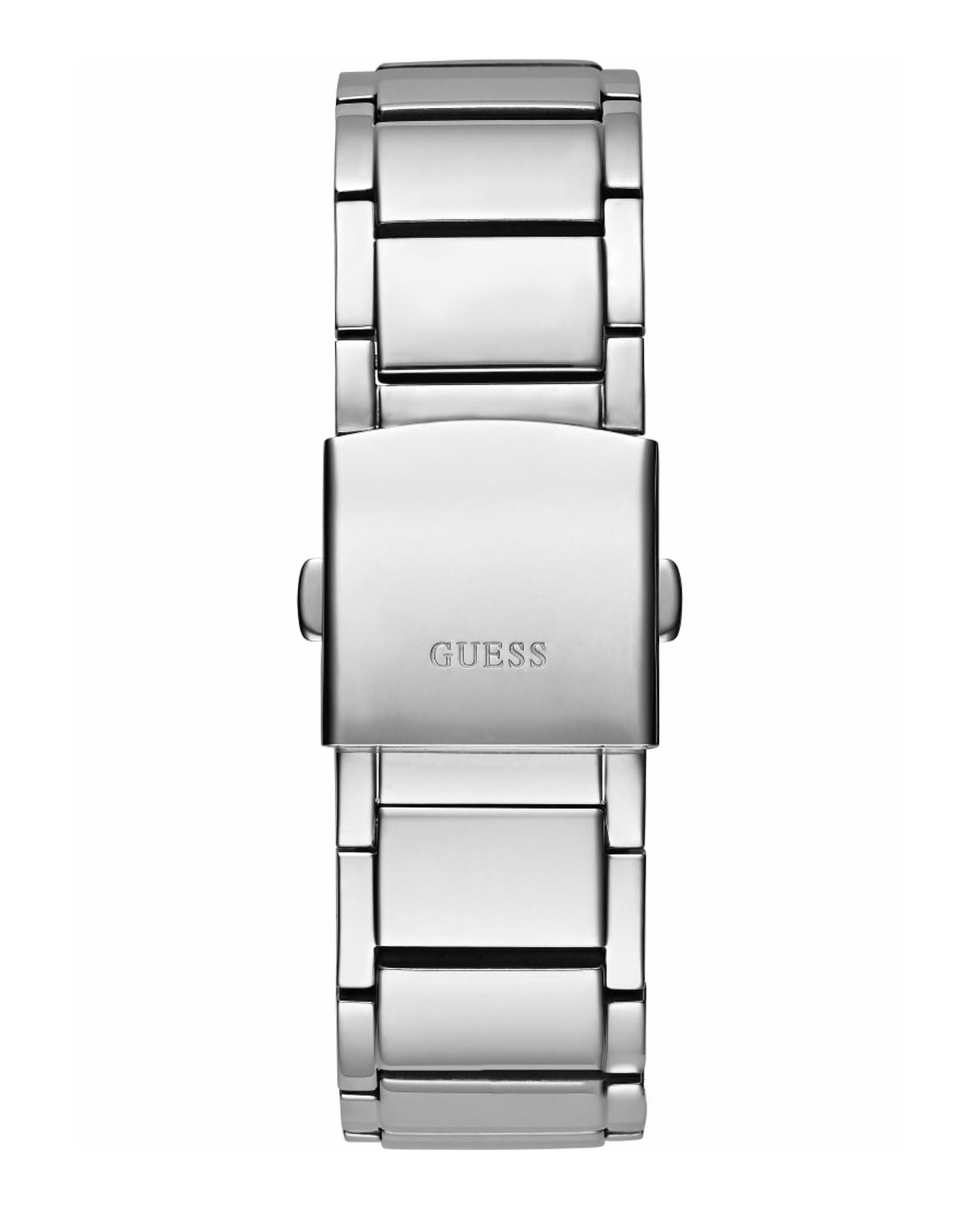 Мужские наручные часы Guess Trend GW0624G1 с минеральным стекломМинеральное стеклоМинеральное стекло представляет собой искусственно выращенный минерал кварца. Такое стекло отличается особой устойчивостью к повреждениям и царапинам. Уступает по некоторым качествам сапфировому стеклу., кварцевый механизм с высокой точностью. Корпус часов изготовлен из стали. 24-х часовой формат времени, число и день недели отображаются на отдельных циферблатах. Метки в виде арабских цифр и штрихов. Стрелки и метки с люминесцентным покрытиемЛюминесцентное покрытиеПозволяет считывать показания времени в темноте. Производители наносят на стрелки, часовые индексы, безель или поверхность циферблата светонакопительный состав, дающий холодное свечение.. Рифленая заводная головка. Класс водозащиты: 50 метров, позволит защитить корпус от случайных брызг или капель дождя. Стальной браслет на раскладной застёжкеРаскладная застёжкаТакой тип застёжки используется только на браслетах из металла. Она никогда не раскрывается полностью, происходит разделение на 2 и более частей. Раскладывающая застёжка снизит вероятность потери часов к минимуму..