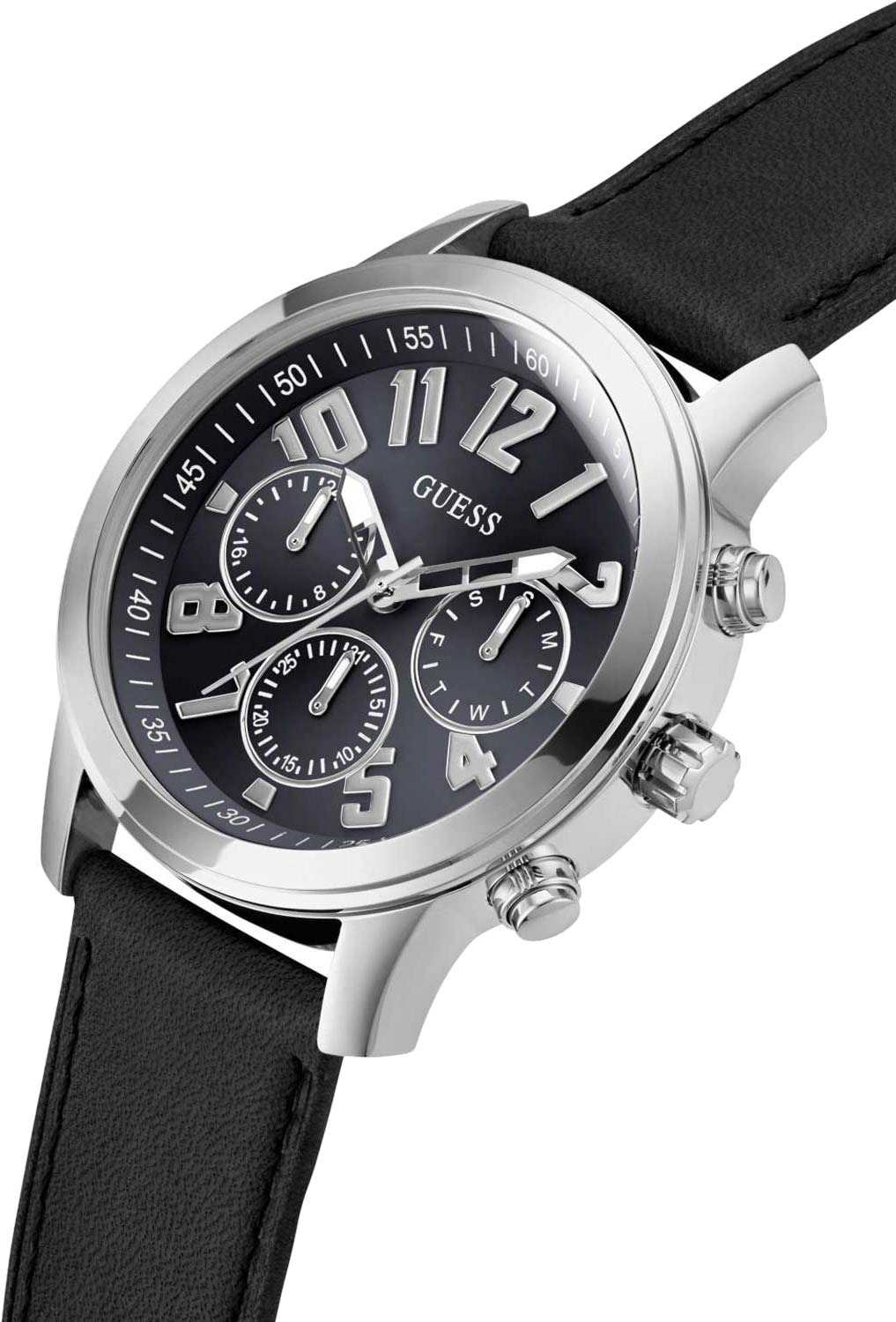 Часы Guess GW0709G1 — это стильный и функциональный аксессуар, который поможет вам всегда быть в курсе времени, независимо от обстоятельств. Эти мужские часы оснащены надежным кварцевым механизмом и имеют круглый стальной корпус диаметром 44 мм и толщиной 13 мм. Черный циферблат, выполненный по технологии Sunray, создает эффект солнечных лучей, добавляя глубину и элегантность дизайну. Циферблат оснащен метками в виде арабских цифр и поддерживает 12-ти и 24-х часовой формат времени. Отдельные циферблаты для отображения даты и дня недели делают использование часов особенно удобным. Люминесцентное покрытиеЛюминесцентное покрытиеПозволяет считывать показания времени в темноте. Производители наносят на стрелки, часовые индексы, безель или поверхность циферблата светонакопительный состав, дающий холодное свечение. на стрелках обеспечивает отличную видимость в темноте. Рифленая заводная головка обеспечивает дополнительный комфорт в эксплуатации. Кожаный ремешок с классической застежкой обеспечивает надежную фиксацию на запястье, добавляя комфорта и стиля. Минеральное стеклоМинеральное стеклоМинеральное стекло представляет собой искусственно выращенный минерал кварца. Такое стекло отличается особой устойчивостью к повреждениям и царапинам. Уступает по некоторым качествам сапфировому стеклу. защищает циферблат от царапин и повреждений, а водозащита 50WR позволяет не беспокоиться о случайном попадании воды. Эти часы станут отличным дополнением вашего образа, подчеркивая ваш вкус и внимание к деталям.