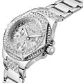 Элегантные женские наручные часы Guess GW0878L1 сочетают в себе стиль и функциональность. Эти часы оснащены точным кварцевым механизмом, что гарантирует надежность и долговечность. Корпус часов выполнен из прочной нержавеющей стали, диаметром 38 мм, а безельБезельВнешний ободок, закрепляющий стекло. В спортивных часах так называется поворотное кольцо с делениями на циферблате, выполняет роль таймера – замеряет отрезки времени на шкале. Неподвижный безель – элемент декора. Однонаправленно вращающийся безель на дайверских часах позволяет фиксировать моменты погружения и выныривания на поверхность. украшен изысканными кристаллами, придающими им роскошный вид. Серебристый циферблат добавляет изделию утонченности и особого шарма. Часы оснащены стальным браслетом с раскладной застежкойРаскладная застёжкаТакой тип застёжки используется только на браслетах из металла. Она никогда не раскрывается полностью, происходит разделение на 2 и более частей. Раскладывающая застёжка снизит вероятность потери часов к минимуму., который обеспечивает комфортное прилегание к запястью и надежную фиксацию.  Люминесцентное покрытиеЛюминесцентное покрытиеПозволяет считывать показания времени в темноте. Производители наносят на стрелки, часовые индексы, безель или поверхность циферблата светонакопительный состав, дающий холодное свечение. на стрелках обеспечивает отличную видимость в темноте. Минеральное стеклоМинеральное стеклоМинеральное стекло представляет собой искусственно выращенный минерал кварца. Такое стекло отличается особой устойчивостью к повреждениям и царапинам. Уступает по некоторым качествам сапфировому стеклу. защищает циферблат от царапин и повреждений, сохраняя его безупречный вид. Водозащита 30WR гарантирует защиту от случайных брызг и дождя, что делает эти часы практичным аксессуаром для повседневной жизни, 12-ти и 24-х часовой формат. Рифленая заводная головка с защитой. Guess – это не просто аксессуар, это заявление о вашем безупречном вкусе и стремлении к совершенству.