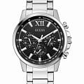 Стильные и функциональные часы Guess GW0900G1 оснащены кварцевым механизмом, что обеспечивает точность и надежность в использовании. Корпус выполнен из прочной стали с полированной поверхностью, придающей изделиям утонченный и современный вид. Черный циферблат украшен метками в виде штрихов и римской цифрой XII, обеспечивающими легкое считывание времени. Время отображается в двух форматах — 12-ти и 24-х часовом, что удобно для тех, кто привык к разным системам времени. Дополнительные циферблаты показывают дату и день недели, что позволяет всегда быть в курсе текущей даты без необходимости использования других устройств. Часы также оснащены тахиметромТахиметрРазмеченная шкала, располагается на ободке или безеле часов. Тахиметр позволяет рассчитать скорость на определённом участке пути, расстояние измеряется в километрах или милях., что добавляет им функциональности и может быть полезно для измерения скорости. Люминесцентное покрытиеЛюминесцентное покрытиеПозволяет считывать показания времени в темноте. Производители наносят на стрелки, часовые индексы, безель или поверхность циферблата светонакопительный состав, дающий холодное свечение. на стрелках и метках обеспечивает отличную видимость в темноте. Минеральное стеклоМинеральное стеклоМинеральное стекло представляет собой искусственно выращенный минерал кварца. Такое стекло отличается особой устойчивостью к повреждениям и царапинам. Уступает по некоторым качествам сапфировому стеклу. защищает циферблат от царапин и повреждений, а водозащита 50WR позволяет не волноваться о случайных контактах с водой, например, во время дождя. Браслет из стали оснащен раскладной застежкойРаскладная застёжкаТакой тип застёжки используется только на браслетах из металла. Она никогда не раскрывается полностью, происходит разделение на 2 и более частей. Раскладывающая застёжка снизит вероятность потери часов к минимуму., обеспечивающей надежную фиксацию часов на руке и комфорт в ношении. Рифленая заводная головка с защитой добавляет изысканности и одновременно защищает механизм от повреждений. Эти часы идеально подойдут для тех, кто ценит стиль, функциональность и качество в одном аксессуаре.