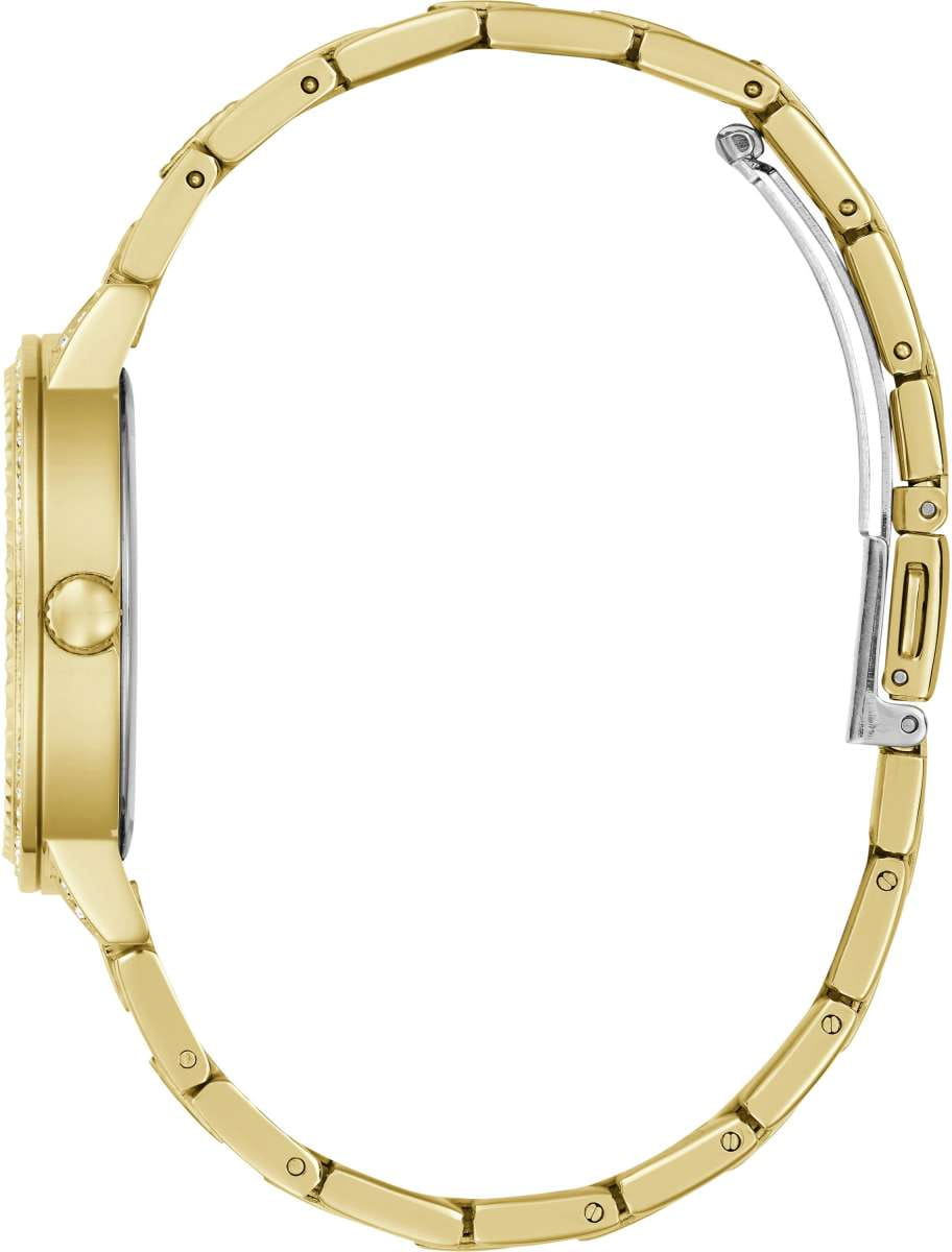 Женские наручные часы с минеральным стекломМинеральное стеклоМинеральное стекло представляет собой искусственно выращенный минерал кварца. Такое стекло отличается особой устойчивостью к повреждениям и царапинам. Уступает по некоторым качествам сапфировому стеклу. Guess Trend G Lace GW0944L2  — это изысканный аксессуар, который добавит вашему современному образу нотку гламура и элегантности. Часы оснащены надежным кварцевым механизмом, который обеспечивает точность и долговечность. Изысканный корпус часов изготовлен из стали с IP-покрытиемIP-покрытиеМетод ионного напыления. Демонстрирует повышенную устойчивость к истиранию, окислению и химическим веществам. Под воздействием высокого давления и температуры около 1500°C молекулы металла надёжно соединяются с частицами корпуса часов.. БезельБезельВнешний ободок, закрепляющий стекло. В спортивных часах так называется поворотное кольцо с делениями на циферблате, выполняет роль таймера – замеряет отрезки времени на шкале. Неподвижный безель – элемент декора. Однонаправленно вращающийся безель на дайверских часах позволяет фиксировать моменты погружения и выныривания на поверхность., украшенный кристаллами, придает часам стильный и современный вид. Класс водозащиты: 30 метров, позволит защитить корпус от случайных брызг или капель дождя. Стрелки с люминесцентным покрытиемЛюминесцентное покрытиеПозволяет считывать показания времени в темноте. Производители наносят на стрелки, часовые индексы, безель или поверхность циферблата светонакопительный состав, дающий холодное свечение. обеспечивают отличную видимость в темноте. Стальной браслет с IP-покрытиемIP-покрытиеМетод ионного напыления. Демонстрирует повышенную устойчивость к истиранию, окислению и химическим веществам. Под воздействием высокого давления и температуры около 1500°C молекулы металла надёжно соединяются с частицами корпуса часов. на раскладной застёжкеРаскладная застёжкаТакой тип застёжки используется только на браслетах из металла. Она никогда не раскрывается полностью, происходит разделение на 2 и более частей. Раскладывающая застёжка снизит вероятность потери часов к минимуму. добавляет модели элегантности и удобства, подчеркивая вашу индивидуальность и стиль. Эта модель станет идеальным аксессуаром для ежедневного использования и особых мероприятий, подчеркивая вашу индивидуальность и стиль.