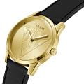 Часы Guess Trend Clark GW0957G2 — это изысканный аксессуар, который добавит вашему современному образу нотку гламура и элегантности. Часы оснащены надежным кварцевым механизмом, который обеспечивает точность и долговечность. Круглый стальной корпус с золотистым IP-покрытиемIP-покрытиеМетод ионного напыления. Демонстрирует повышенную устойчивость к истиранию, окислению и химическим веществам. Под воздействием высокого давления и температуры около 1500°C молекулы металла надёжно соединяются с частицами корпуса часов. и полированной поверхностью диаметром 42 мм придает часам стильный и современный вид. Золотистый циферблат создает утонченное и изысканное впечатление. Люминесцентное покрытиеЛюминесцентное покрытиеПозволяет считывать показания времени в темноте. Производители наносят на стрелки, часовые индексы, безель или поверхность циферблата светонакопительный состав, дающий холодное свечение. на стрелках обеспечивает отличную видимость в темноте. Часы оснащены рифленой заводной головкой для удобного управления. Кожаный черный ремешок с классической застежкой обеспечивает надежную фиксацию часов на руке и комфорт в ношении. Водозащита 50WR позволит мыть руки или гулять под дождем, не опасаясь того, что в корпус попадет вода, а минеральное стеклоМинеральное стеклоМинеральное стекло представляет собой искусственно выращенный минерал кварца. Такое стекло отличается особой устойчивостью к повреждениям и царапинам. Уступает по некоторым качествам сапфировому стеклу. защищает циферблат от царапин. Эта модель станет идеальным аксессуаром для ежедневного использования и особых мероприятий, подчеркивая вашу индивидуальность и стиль.