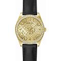 Женские наручные часы с минеральным стекломМинеральное стеклоМинеральное стекло представляет собой искусственно выращенный минерал кварца. Такое стекло отличается особой устойчивостью к повреждениям и царапинам. Уступает по некоторым качествам сапфировому стеклу. Guess Trend Boa GW0989L2 представляют собой элегантный аксессуар. Корпус диаметром 32 мм выполнен из стали с IP-покрытиемIP-покрытиеМетод ионного напыления. Демонстрирует повышенную устойчивость к истиранию, окислению и химическим веществам. Под воздействием высокого давления и температуры около 1500°C молекулы металла надёжно соединяются с частицами корпуса часов., что обеспечивает как привлекательный внешний вид, так и высокую прочность. Циферблат золотистого цвета стильно украшен логотипом компании, добавляющий изделию роскоши и шарма. Механизм часов кварцевый, что гарантирует точность хода времени без необходимости постоянного завода. БезельБезельВнешний ободок, закрепляющий стекло. В спортивных часах так называется поворотное кольцо с делениями на циферблате, выполняет роль таймера – замеряет отрезки времени на шкале. Неподвижный безель – элемент декора. Однонаправленно вращающийся безель на дайверских часах позволяет фиксировать моменты погружения и выныривания на поверхность. с кристаллами придают часам стильный и современный вид. Для защиты циферблата используется минеральным стеклоМинеральное стеклоМинеральное стекло представляет собой искусственно выращенный минерал кварца. Такое стекло отличается особой устойчивостью к повреждениям и царапинам. Уступает по некоторым качествам сапфировому стеклу., устойчивое к царапинам, сохраняющее первоначальный вид на протяжении длительного времени. Модель обладает водозащитой 3 АТМ, защищающий часы от случайных брызг воды, хотя они не подходят для плавания или занятий водными видами спорта. Стрелки покрыты люминесцентным покрытиемЛюминесцентное покрытиеПозволяет считывать показания времени в темноте. Производители наносят на стрелки, часовые индексы, безель или поверхность циферблата светонакопительный состав, дающий холодное свечение., обеспечивающим отличную читаемость в темноте. Ремешок часов изготовлен из кожи со стандартной застежкой, обеспечивающей комфортное ношение и безопасность. Часы GW0989L2 отличаются особой изысканностью благодаря декоративным элементам, таким как кристаллы.