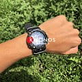 Внушительный аксессуар стильно смотрится на широком запястье, гармонично смотрятся крупные детали и общее тёмное исполнение. Задняя крышка здесь отсутствует, ударопрочный корпусУдаропрочный корпусМеханизм заключён в корпус, выполненный из современных материалов, устойчивых к ударам, механическим повреждениям и падению с высоты: инновационный пластик, карбон, нержавеющая сталь, титан. сделан из монолитного углеродного монокока, вдохновлённого конструкцией ранних самолётов. Он состоит из 52 карбоновых слоёв, уникальная текстура просматривается на боковых частях безеляБезельВнешний ободок, закрепляющий стекло. В спортивных часах так называется поворотное кольцо с делениями на циферблате, выполняет роль таймера – замеряет отрезки времени на шкале. Неподвижный безель – элемент декора. Однонаправленно вращающийся безель на дайверских часах позволяет фиксировать моменты погружения и выныривания на поверхность. – с успехом реализована технология Carbon Core GuardCarbon Core Guard Новейшая структура корпуса, разработанная Casio. Полиуретановая пластина дополнительно усилена карбоновыми вставками, что придаёт специальную защиту от механических повреждений. Карбон отличается лёгкостью и прочностью.. Полимерный ремешок тоже имеет усиление карбоновыми волокнами. Наручные часы обладают полезным функционалом: BluetoothBluetoothСовременная технология, позволяющая синхронизировать часы с телефоном и переносить данные. Часы с Bluetooth расширяют возможности вашего смартфона и делают его использование ещё более удобным., будильник, мировое времяМировое время Полезное часовое усложнение, отображающее время в основных городах и известных областях по всему миру, оно связано с часовыми поясами, удобно для путешественников и бизнесменов. , таймер, приём радиосигнала, питание от солнечной батареи . Сапфировое стекло с антибликовой обработкой. Яркая люминесцентная подсветкаЛюминесцентное покрытиеПозволяет считывать показания времени в темноте. Производители наносят на стрелки, часовые индексы, безель или поверхность циферблата светонакопительный состав, дающий холодное свечение.. Габариты: 50,1 x 46,4 x 16,9 мм.
