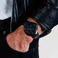 Швейцарские кварцевые часы Hamilton Ventura Edge Dune Limited Edition H24624330 созданы в тесном сотрудничестве с мастером по реквизиту фильма "Дюна: Часть вторая". Часы выполнены в стиле наручного устройства и имеют угловатый матово-черный угловой корпус с PVD-покрытиемPVDУльтратонкое покрытие наносится в технике вакуумного напыления, сочетает в себе нитрид титана особой прочности со слоем золота или оксида хрома. Несёт в себе декоративную или защитную функцию.. Их цифровой дисплей светится синим цветом, что указывает на безошибочно узнаваемые голубые глаза фременов, а циферблат имитирует рельефные элементы, которые мы можем видеть на реквизите в фильме. Циферблат оснащён дисплеем в двумя экранами: на верхнем отображаются часы, на нижнем – минуты. Большая заводная коронка оснащена кнопкой подсветки, которая гаснет с небольшой вспышкой, как и в оригинальных Desert Watch. Эта модель, выпущенная ограниченным тиражом, поставляется в памятной упаковке, вдохновленной фильмом, которую поклонники фильмов и книг, а также коллекционеры не захотят пропустить! На внутренней стороне коробки часов выгравированы слова знаменитой литании против страха.