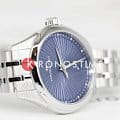 Синий циферблат украшен изящными линиями, создающими иллюзию движения, а сапфировое стеклоСапфировое стеклоПрочный и надёжный материал из кристалла сапфира синтетического происхождения, характеризующийся особой твёрдостью и устойчивостью к царапинам и повреждениям. защищает дисплей от царапин, сохраняя его идеальный вид. Часы оснащены точным кварцевым механизмом, гарантирующим надежность и стабильность хода.